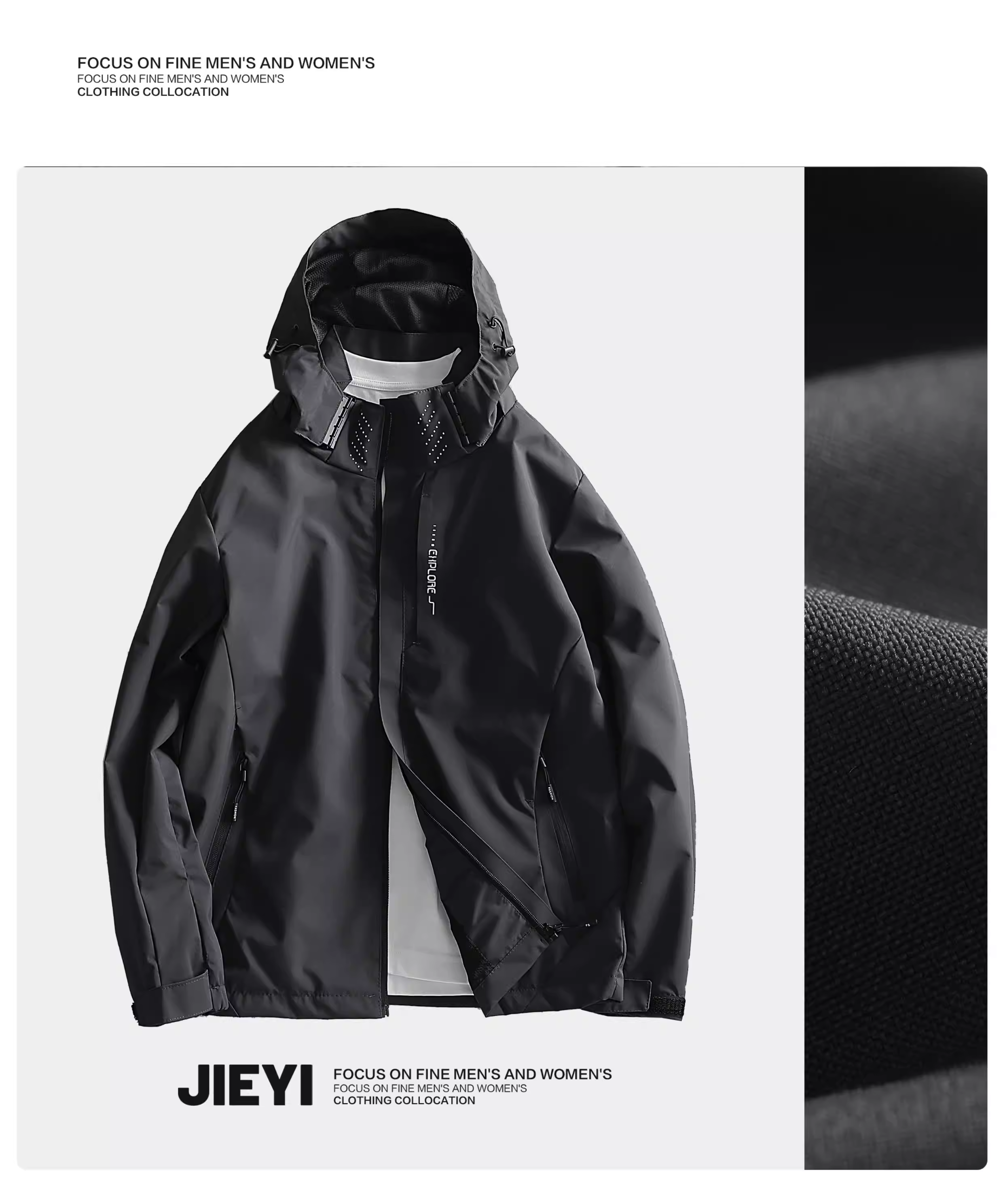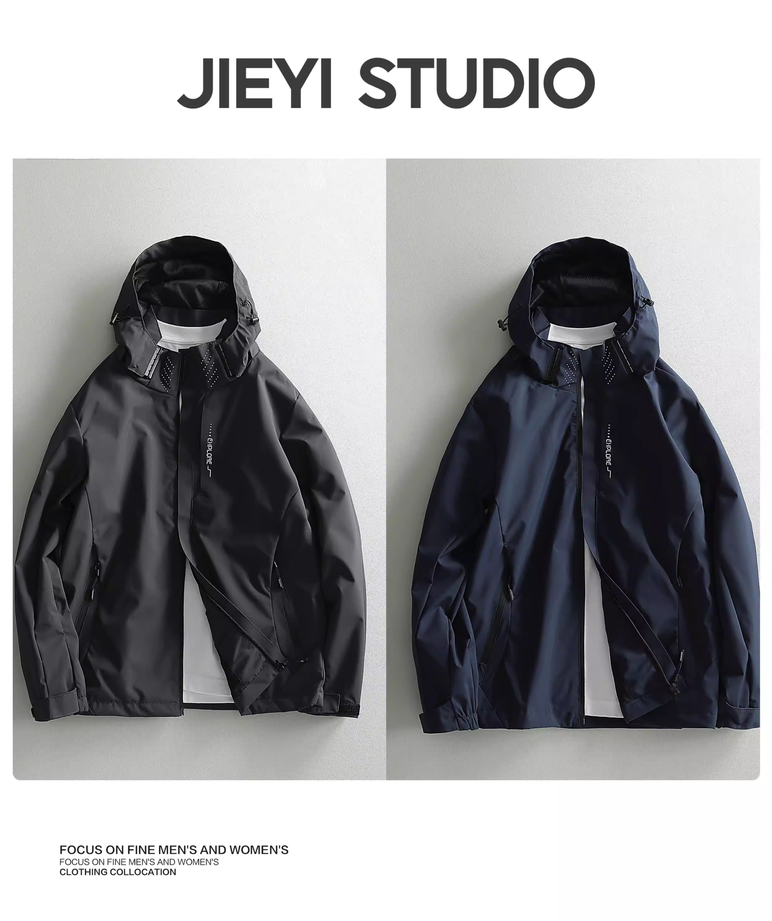 - Jieyi Clean Edition Áo khoác có mũ trùm đầu hợp thời trang dành cho nam giới Áo khoác có mũ trùm đầu phong cách cổ điển Áo khoác gió thêu mới đầu mùa thu