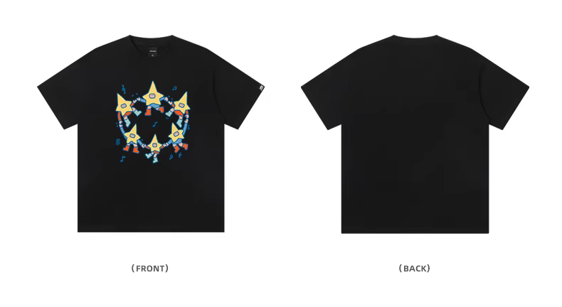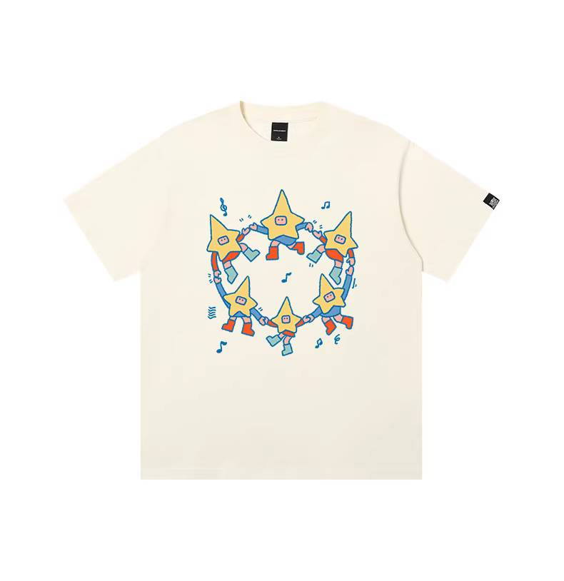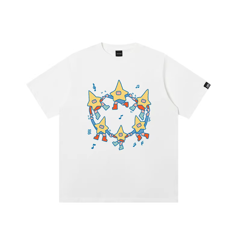 Jungle Tiger & Illustrator Collaboration Star Hand-in-Hand Print Áo thun nữ thiết kế mùa hè dành cho cặp đôi tay ngắn dành cho nam