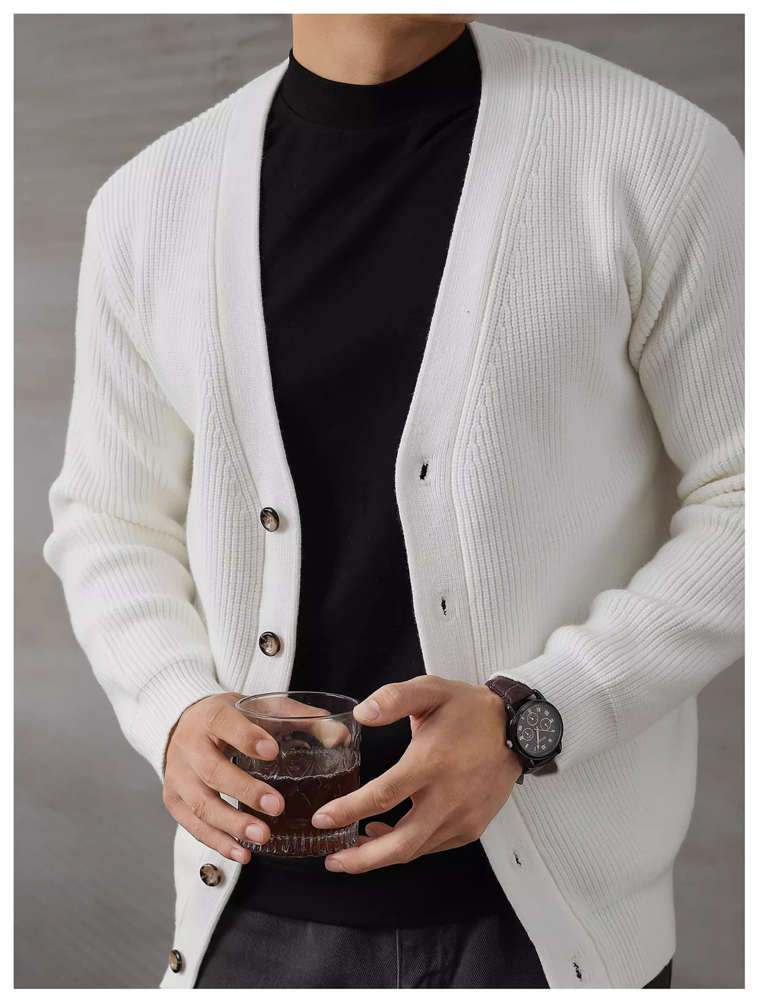 - Khuyến mãi đặc biệt: Áo khoác cardigan dáng chữ V phong cách nghệ thuật màu trắng dành cho nam, chất liệu dệt kim jacquard kẻ caro thời trang, kiểu dáng ôm body đa năng