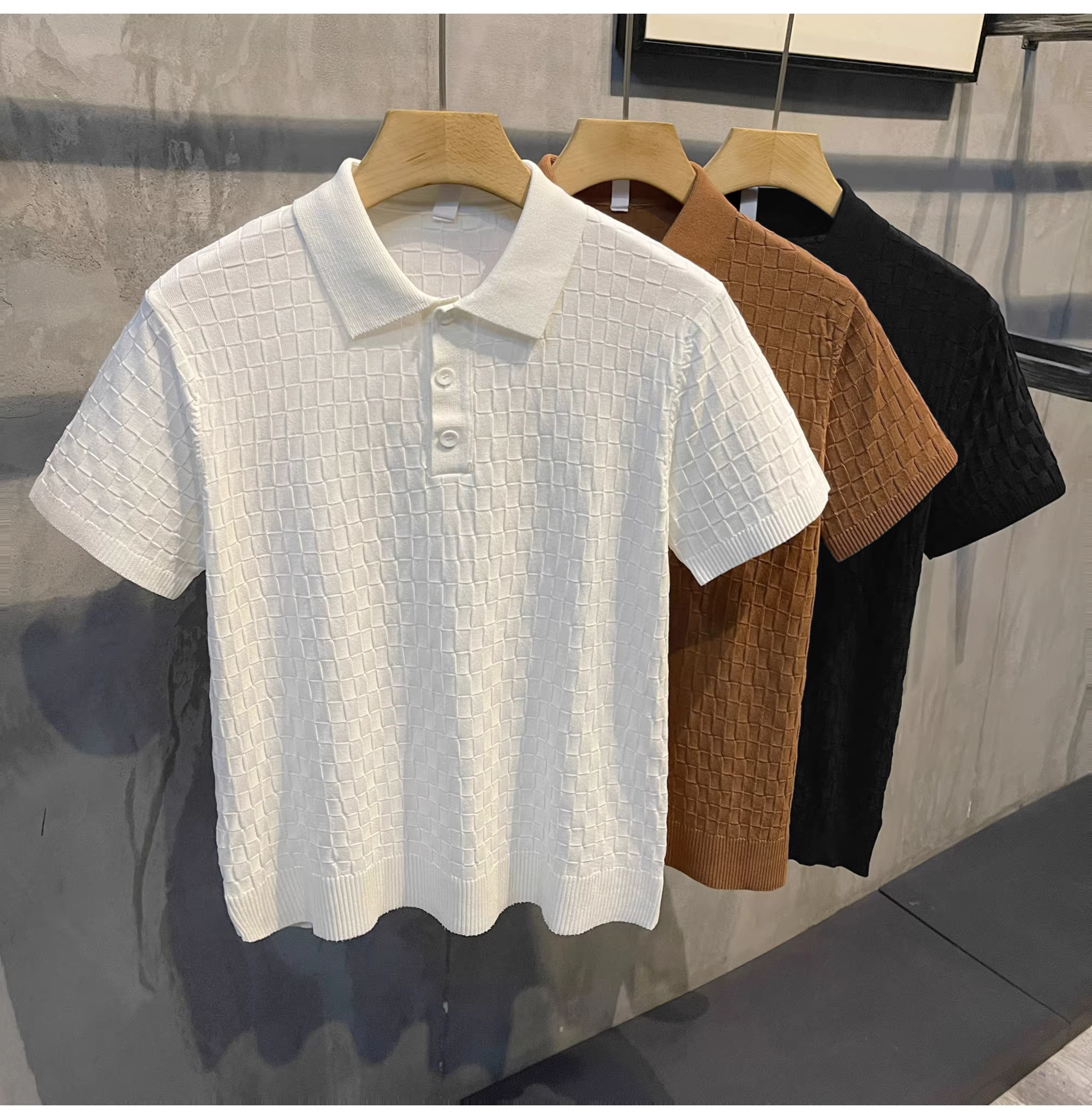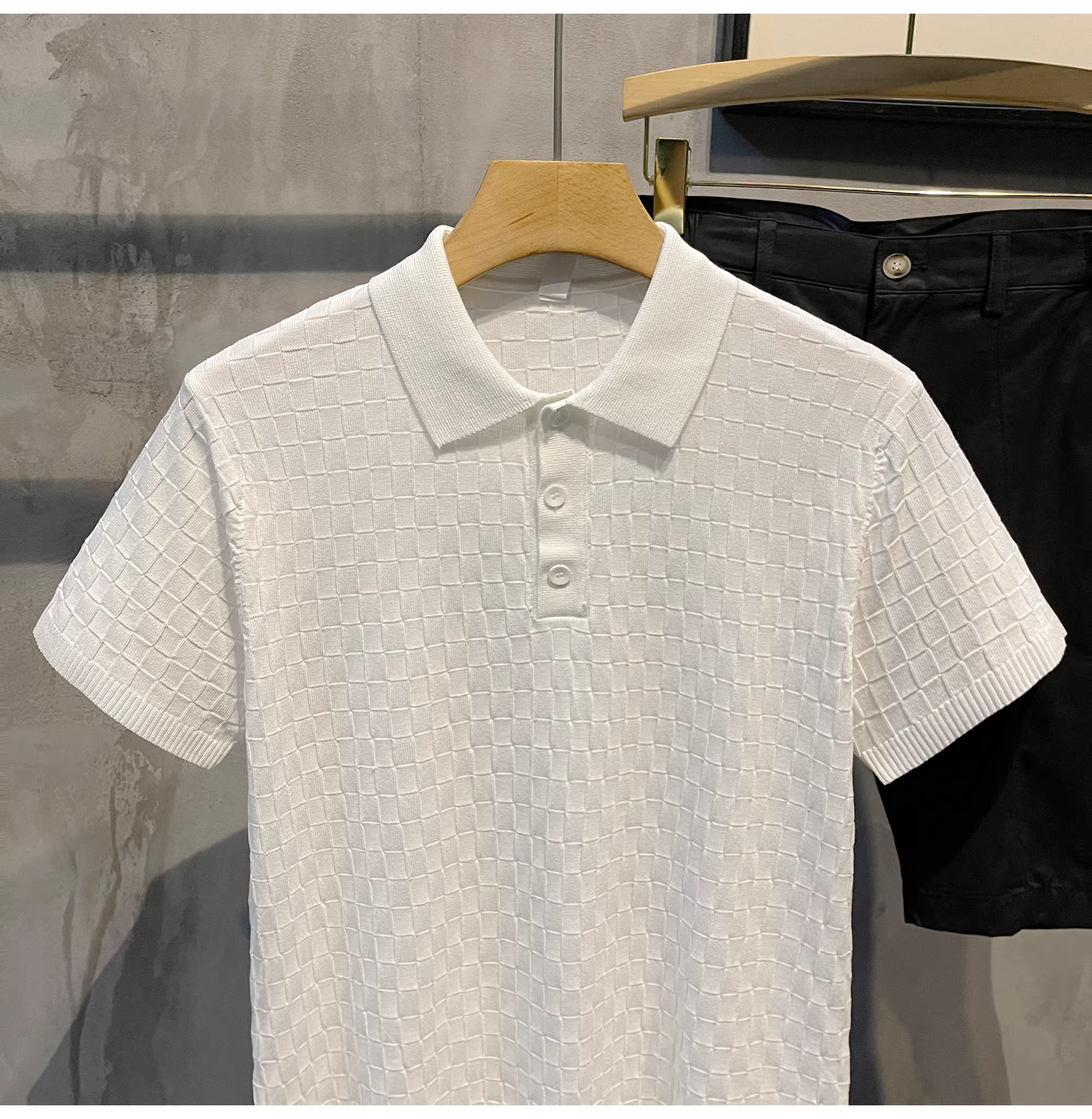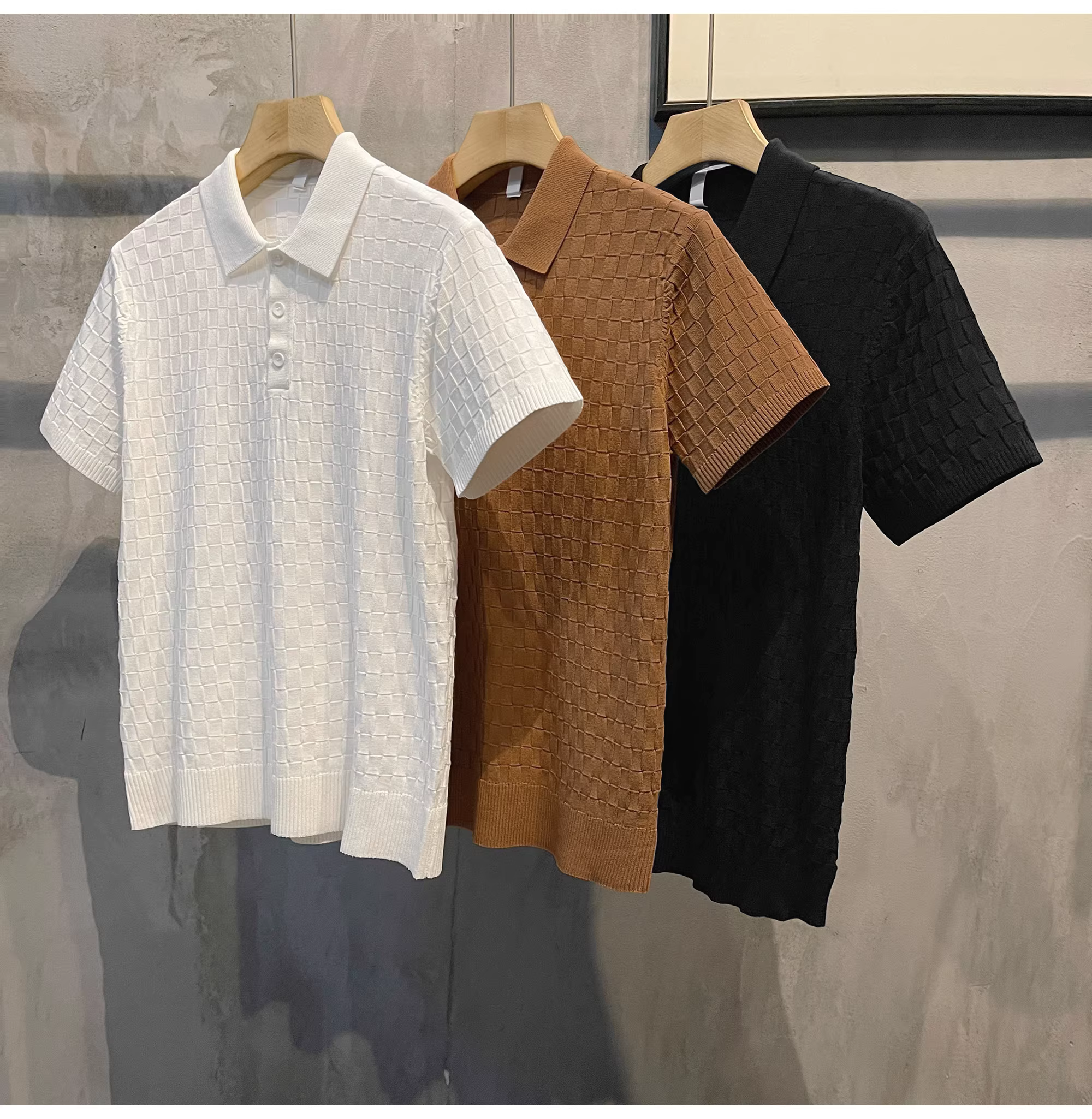 Khuyến mãi đặc biệt: Áo polo dệt kim chất liệu jacquard kẻ ô vuông, màu trơn, kiểu dáng Hàn Quốc, ôm body, tay ngắn, cổ áo thời trang