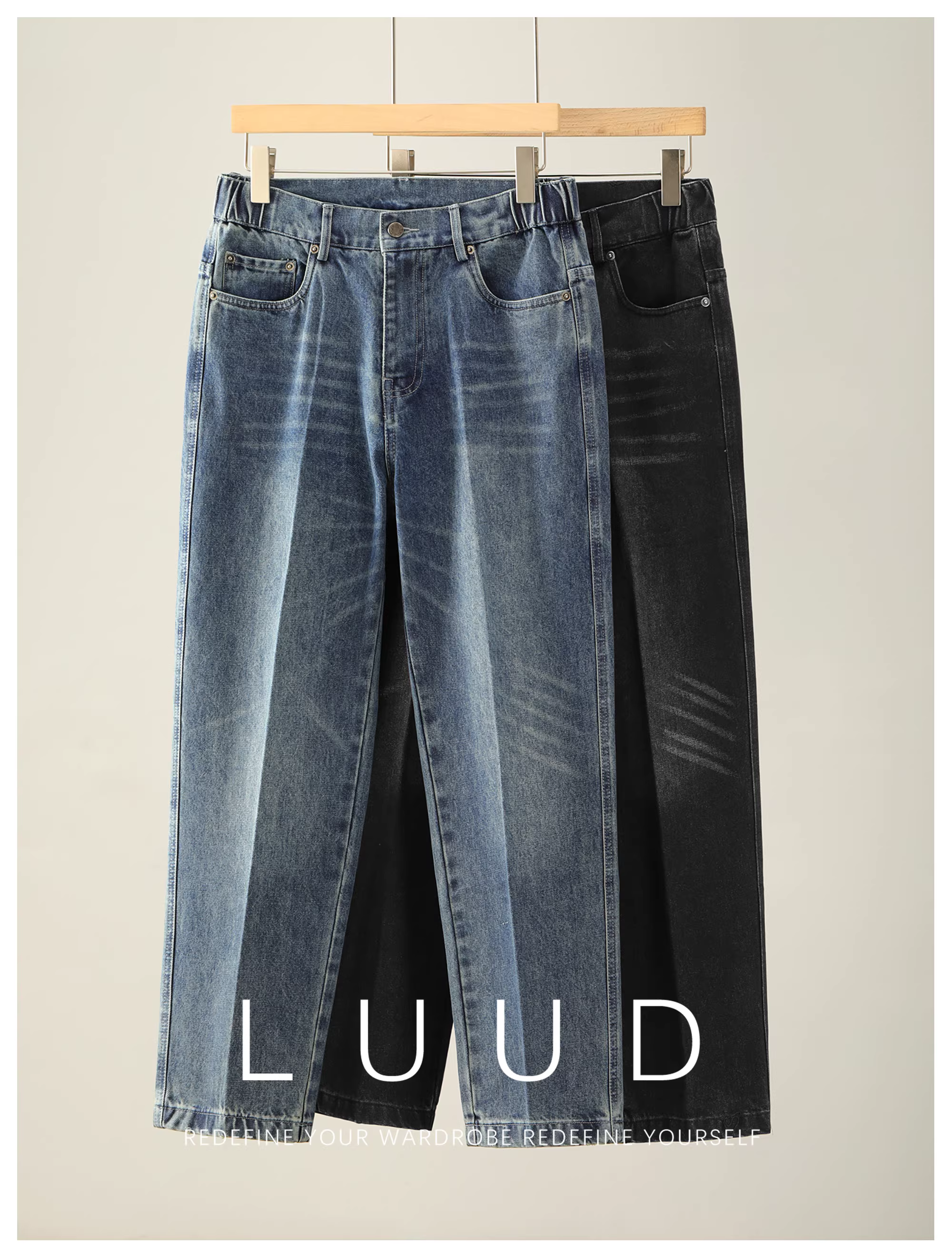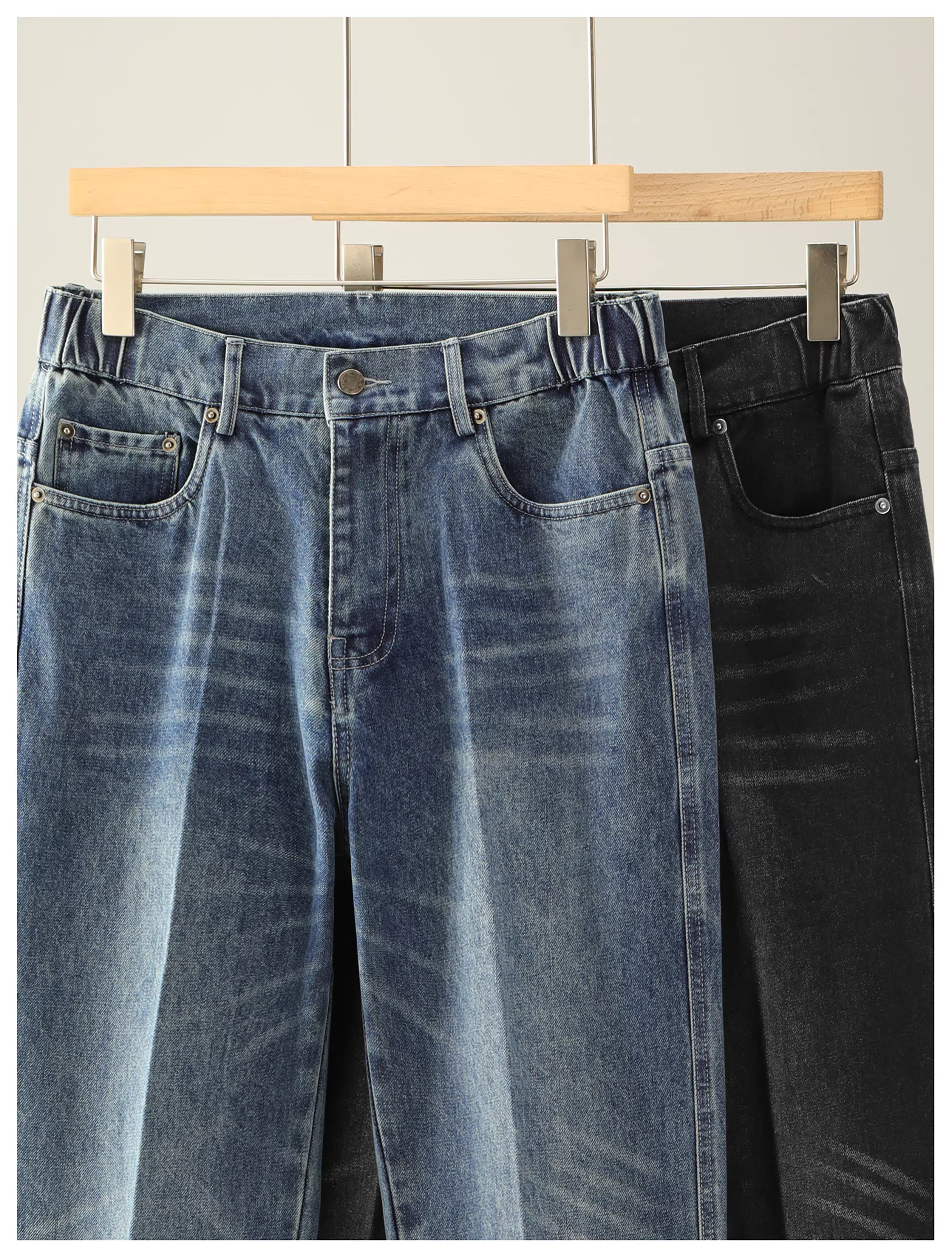 Khuyến mãi đặc biệt: Quần jean nam dáng thẳng cổ điển, chất liệu washed vintage, kiểu dáng bất quy tắc, cắt may ba chiều, quần dài xếp ly thủ công