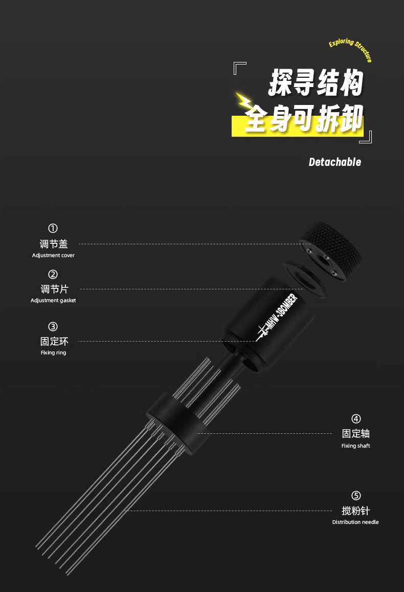 - Kim khuấy bột Bomber Lightning 2.0 Kim phân phối bột cà phê có thể điều chỉnh được Kim phân phối bột kiểu Ý Máy khuấy kiểu kim để phân phối đều