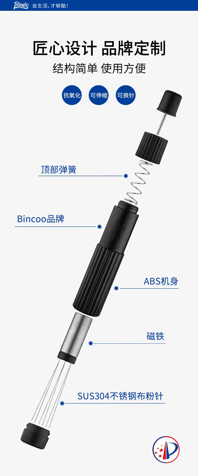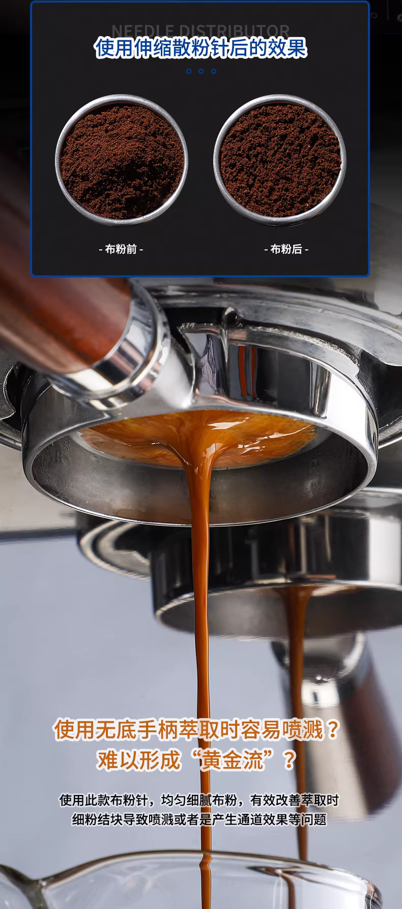 - Kim phân phối bột từ tính cà phê Ý Bincoo, dụng cụ phân phối bột để phá vỡ cục bột và phân phối bột đều, kim khuấy bột.