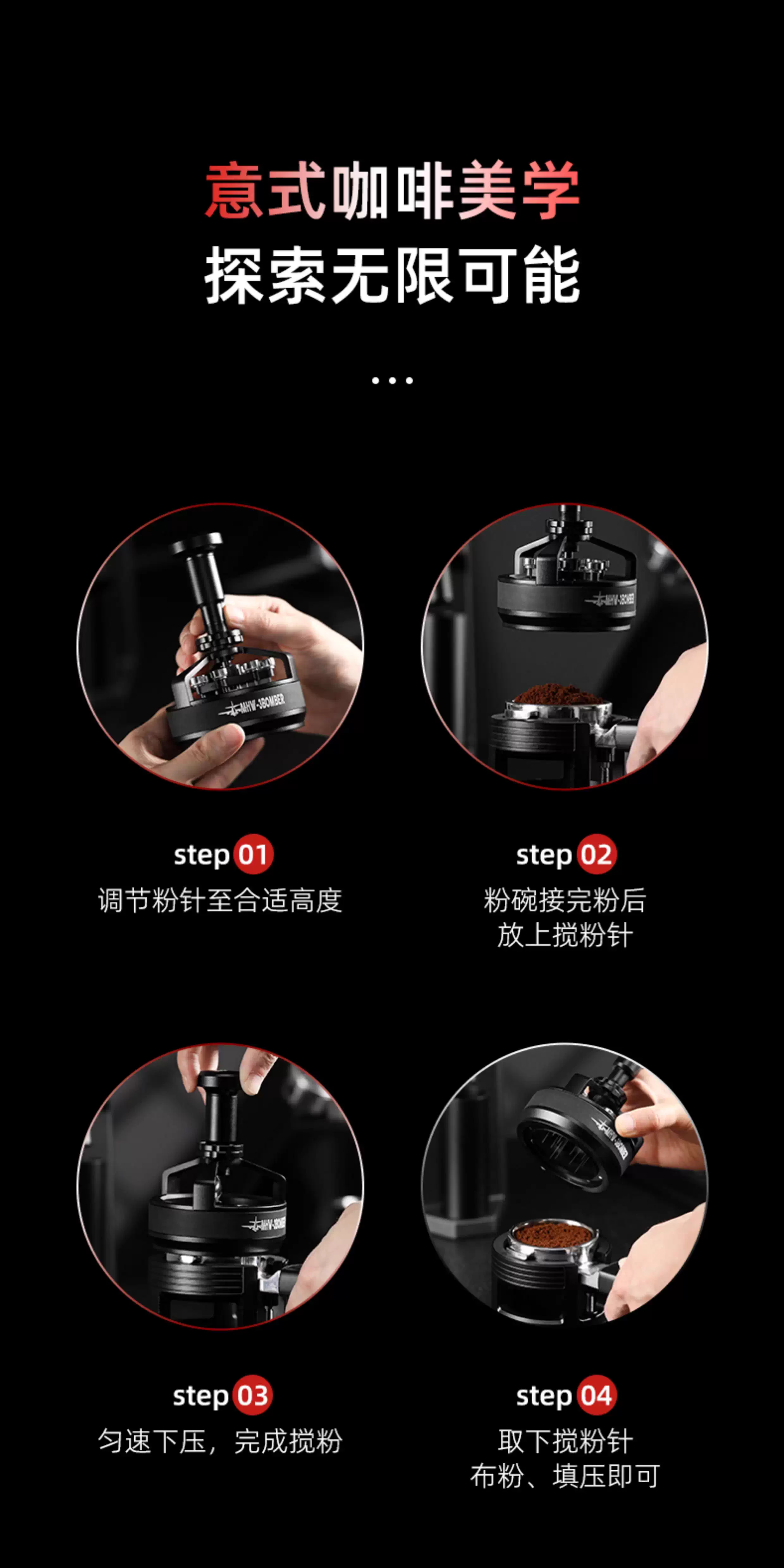- Kim trộn bột dạng xoáy dòng Bomber, kim phân phối cà phê, kim phân phối bột xoay, kim khuấy và phân tán bột kết tụ