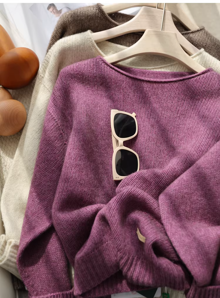 Len yak quý giá! Áo len cổ tròn dệt kim dày dặn, ấm áp, viền cuốn, chất liệu len mềm mại như vàng của Tây Tạng, 260g, dành cho nữ, thích hợp cho mùa thu và mùa đông.