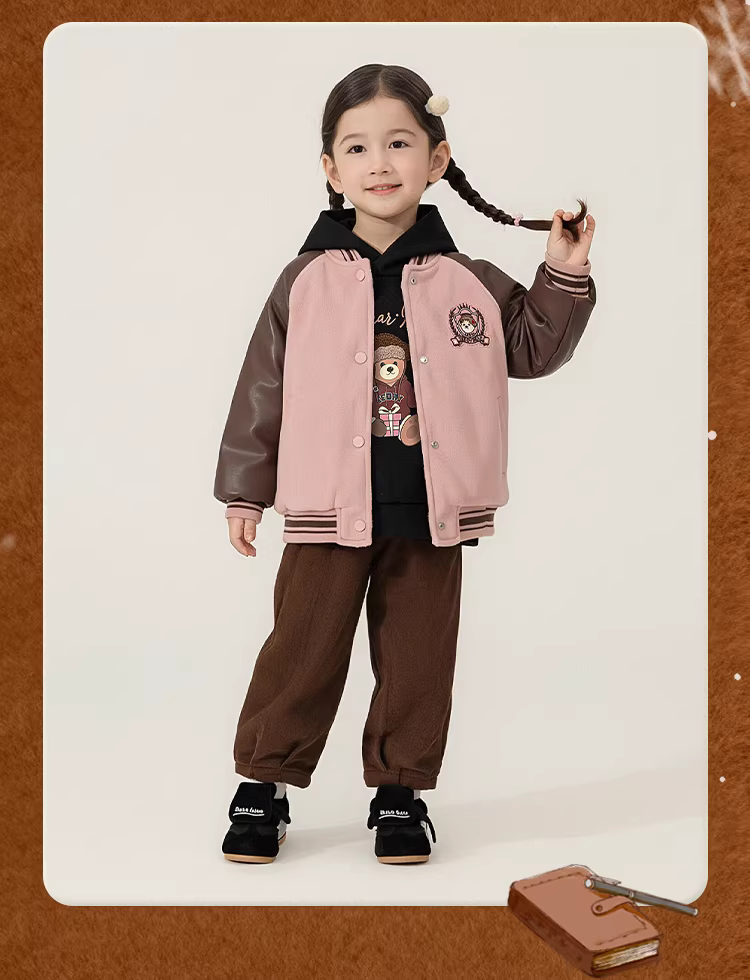 - [Loạt sản phẩm Gấu bông] Áo khoác bé gái INSbobo Mùa đông 2025 Áo khoác trẻ em mới Áo khoác mùa đông kiểu bóng chày