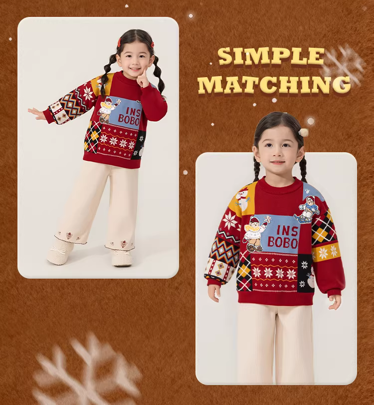 - [Loạt sản phẩm Gấu bông] Áo len trẻ em INSbobo Áo len dệt kim cho bé trai Mùa đông 2025 Áo bé gái Giáng sinh