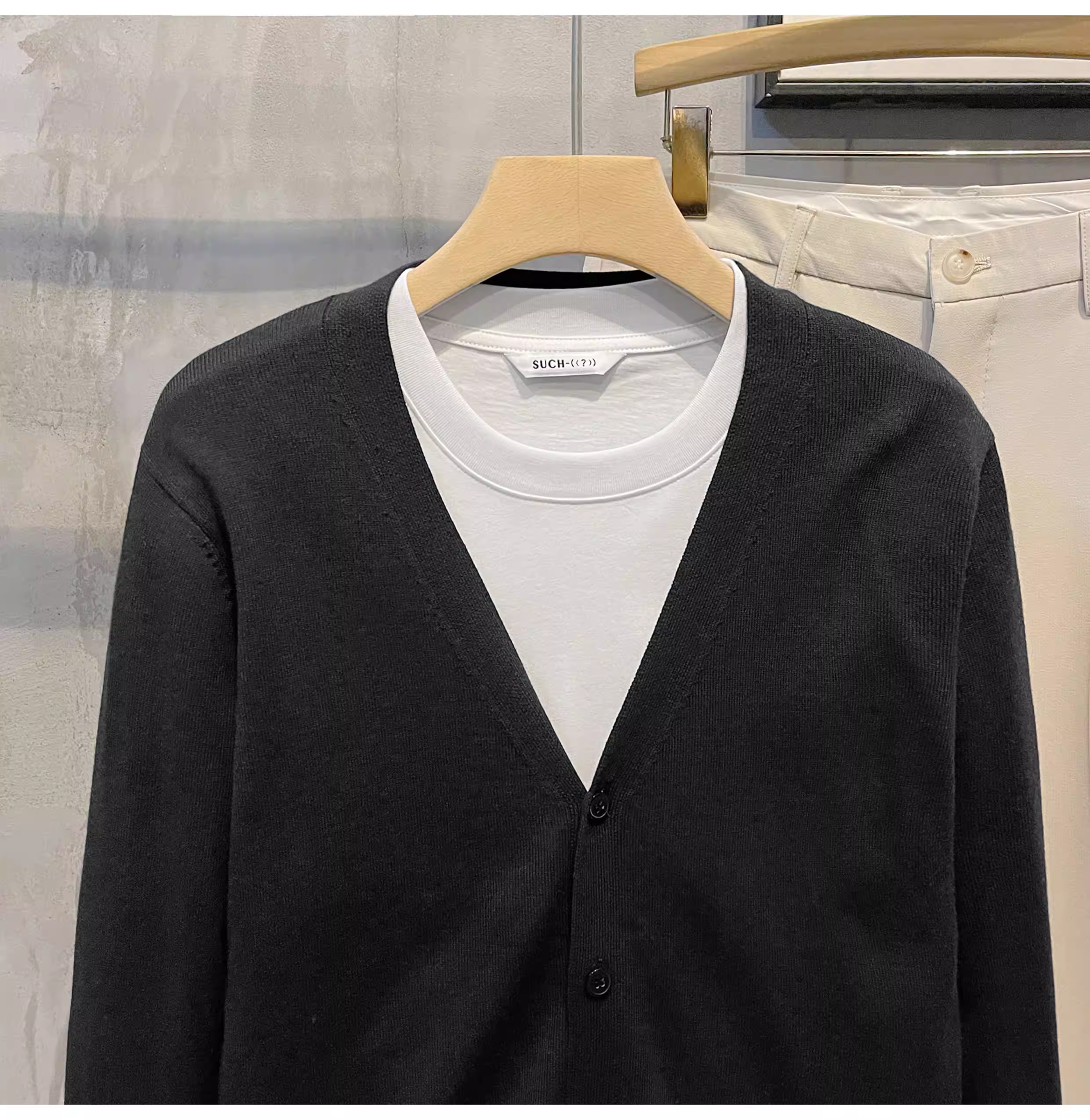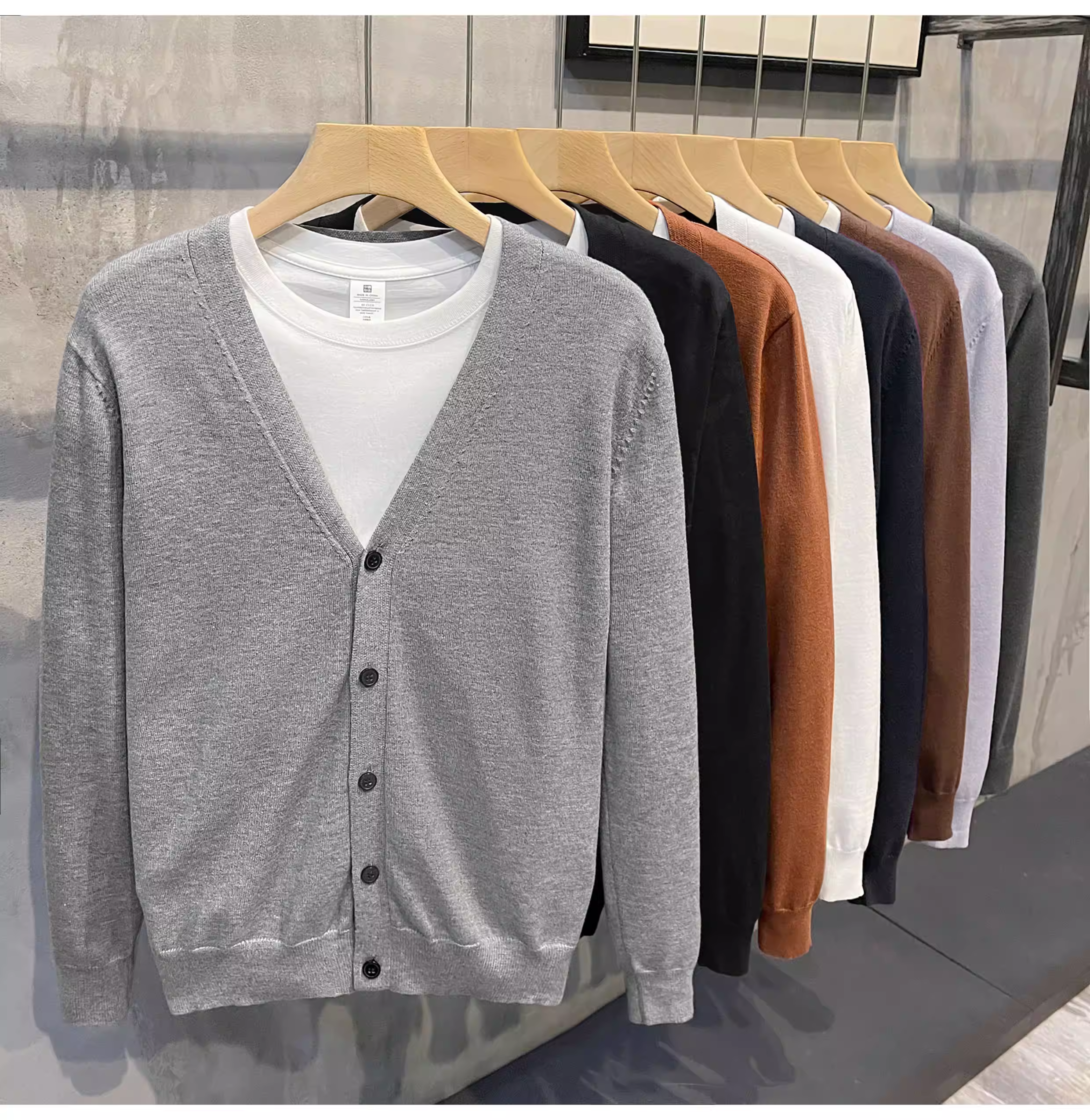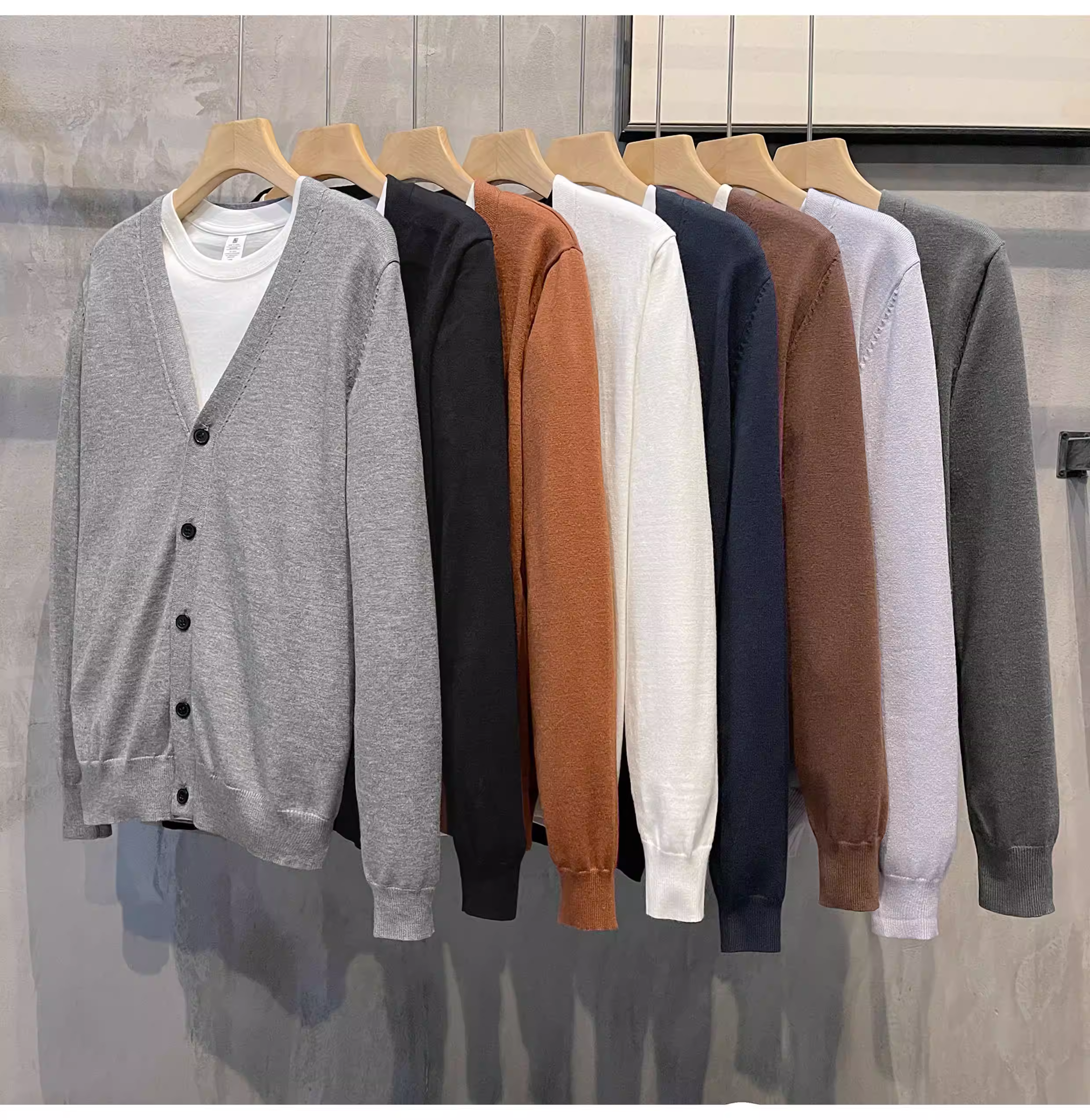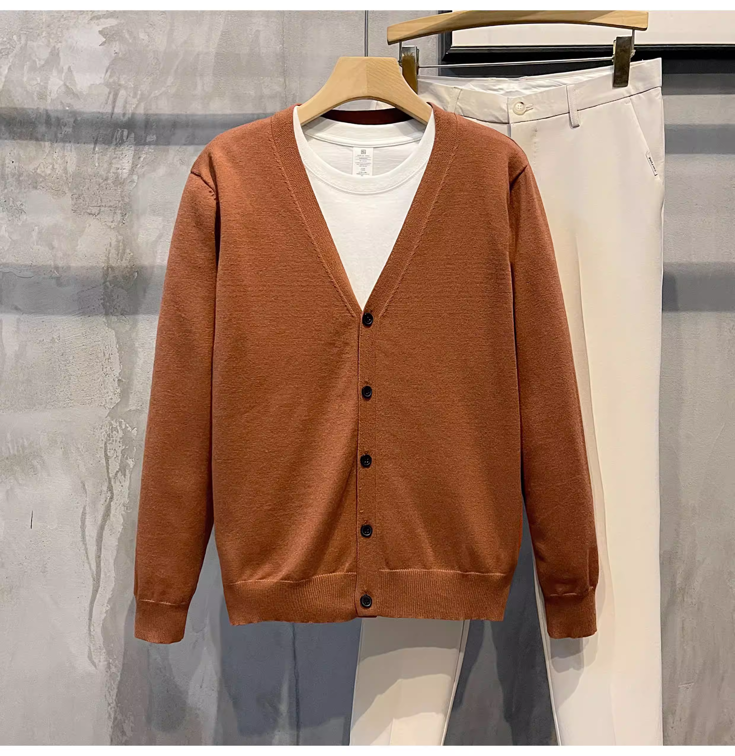 - LUUD Modal Core-spun Sợi Áo len cổ chữ V chống mài mòn Áo len dệt kim cổ điển kiểu Anh màu trơn hợp thời trang dành cho nam