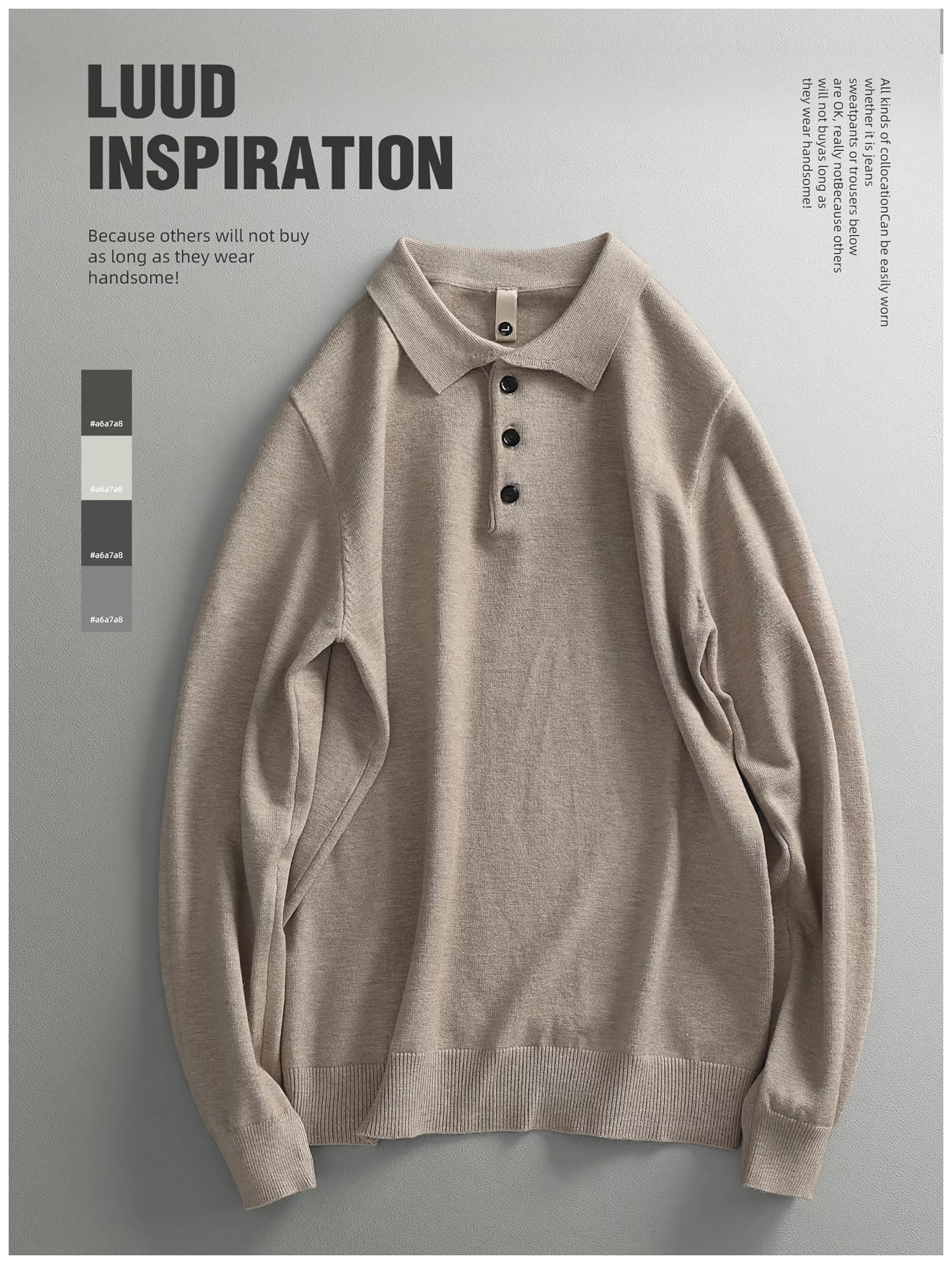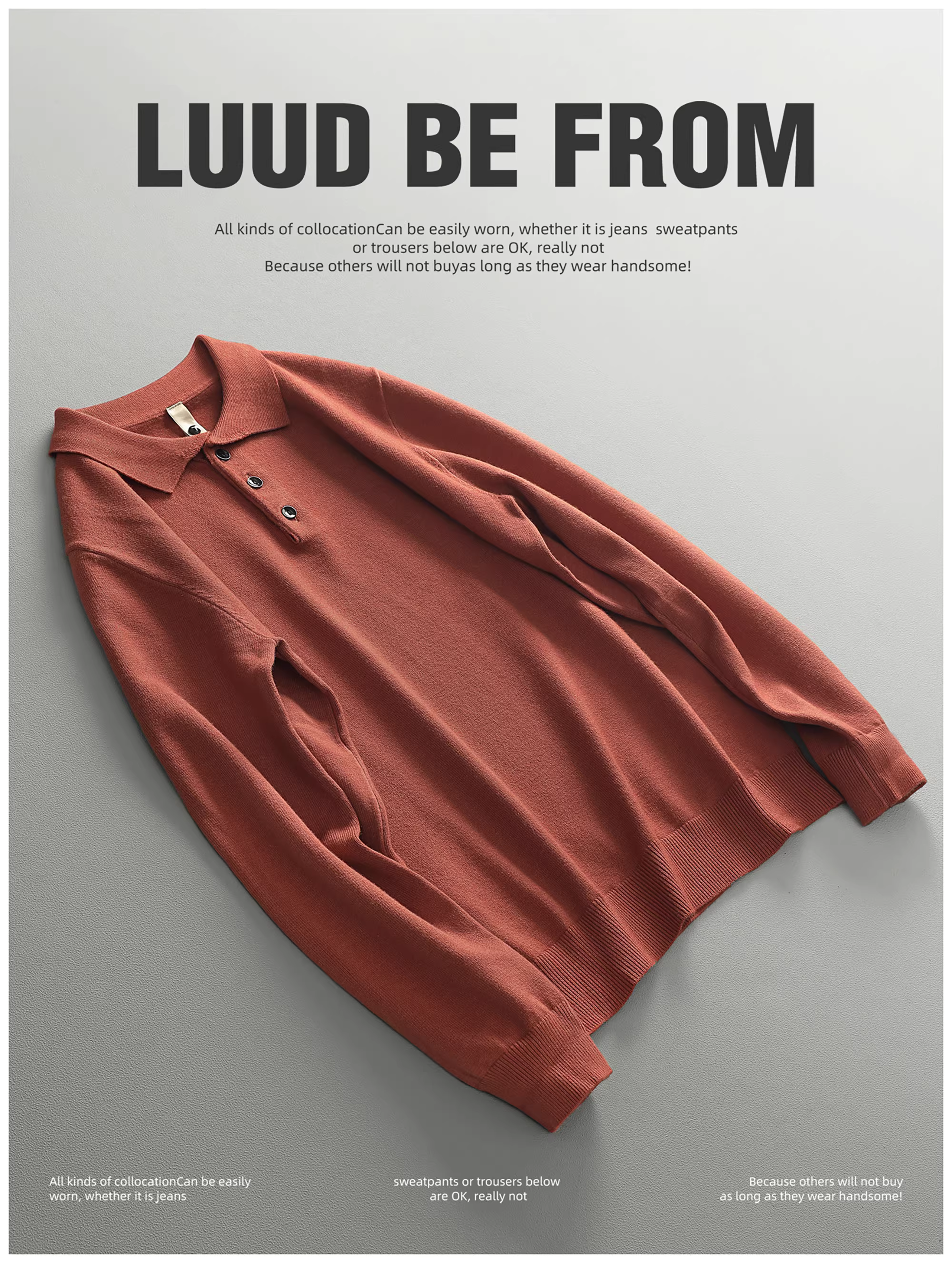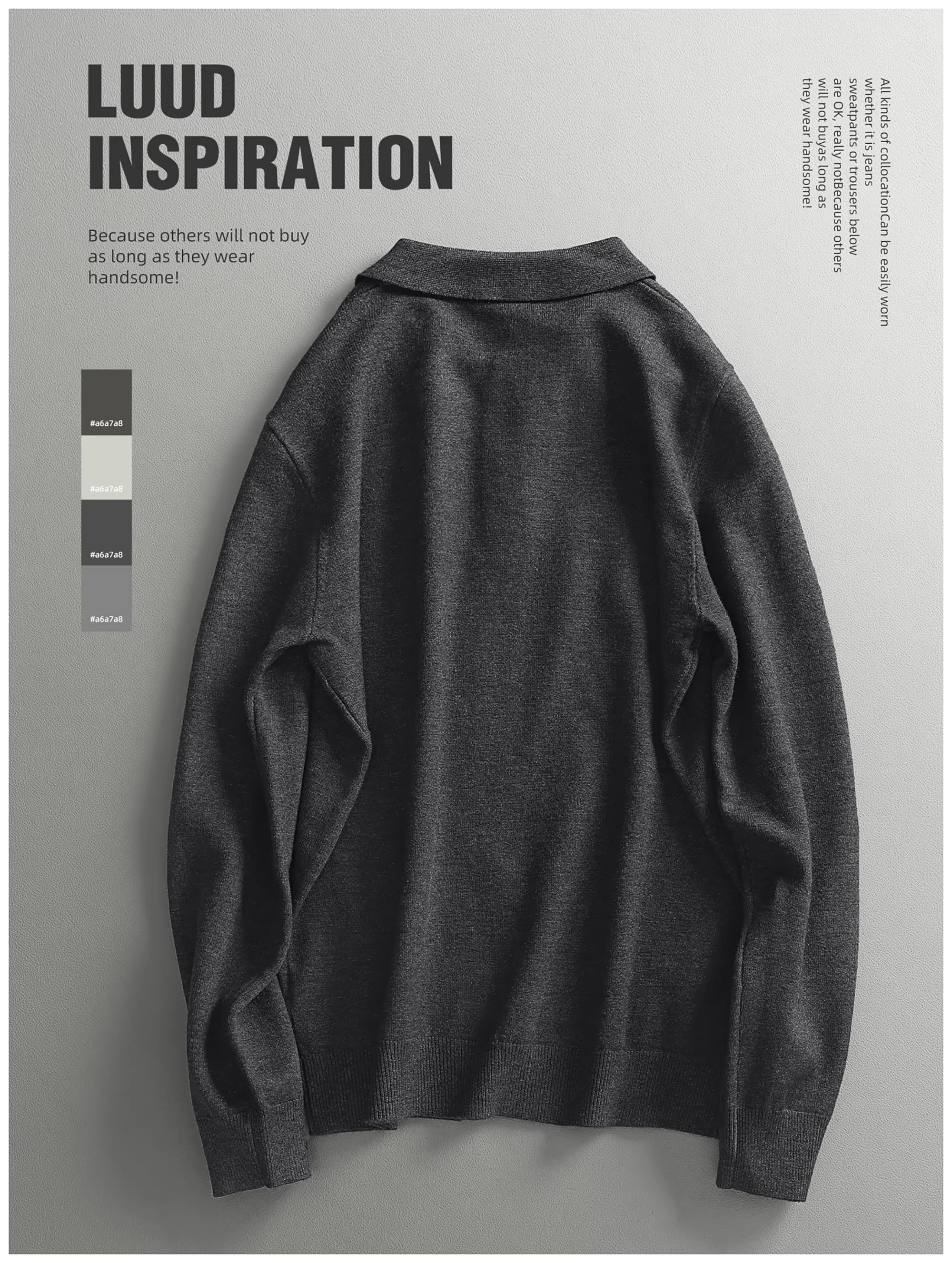 - LUUD Modal Màu trơn Đơn giản dành cho nam Slim Fit Áo dệt kim có cổ áo len sợi nhiệt Áo len ấm áp Phong cách mùa thu đông