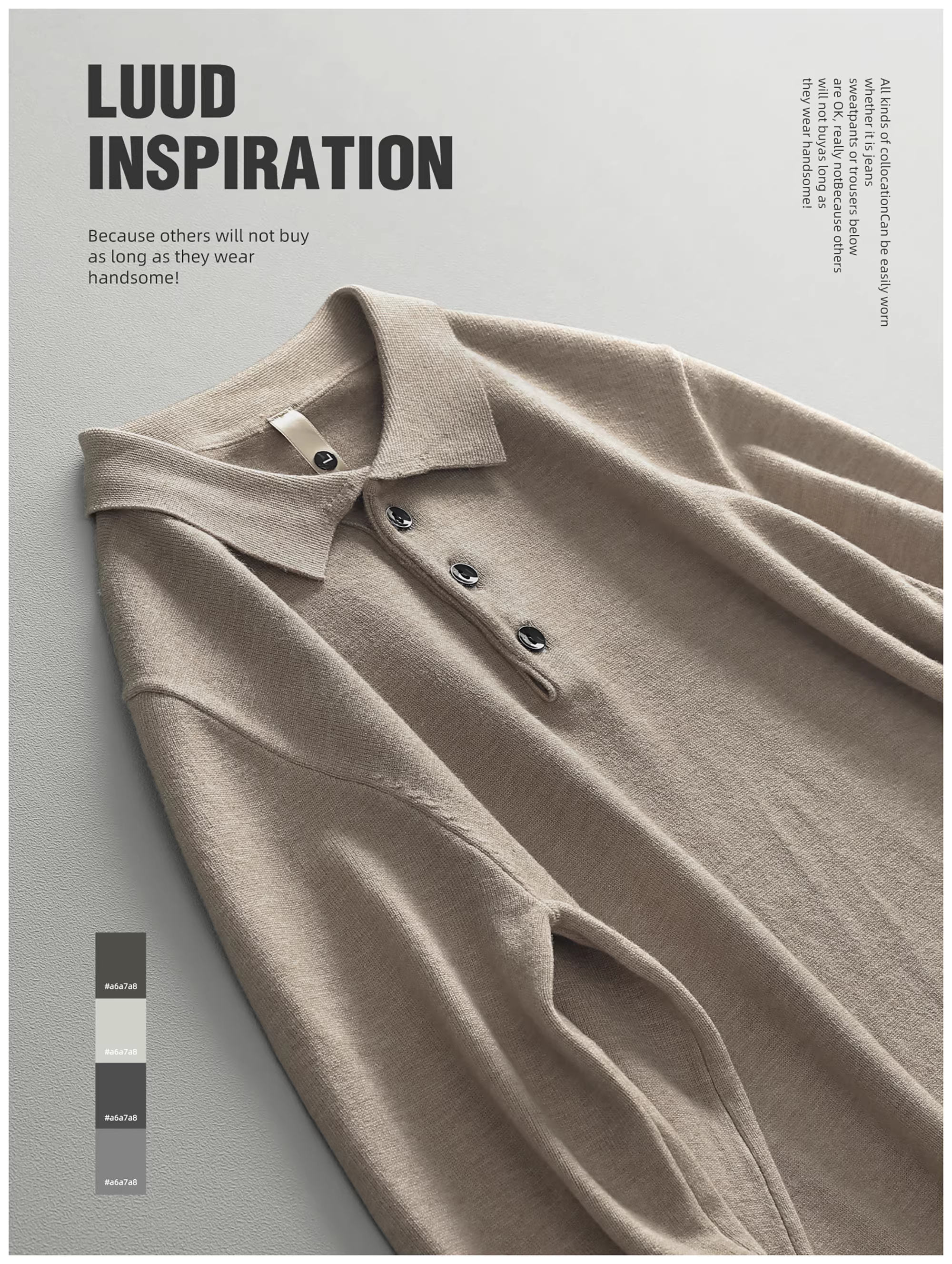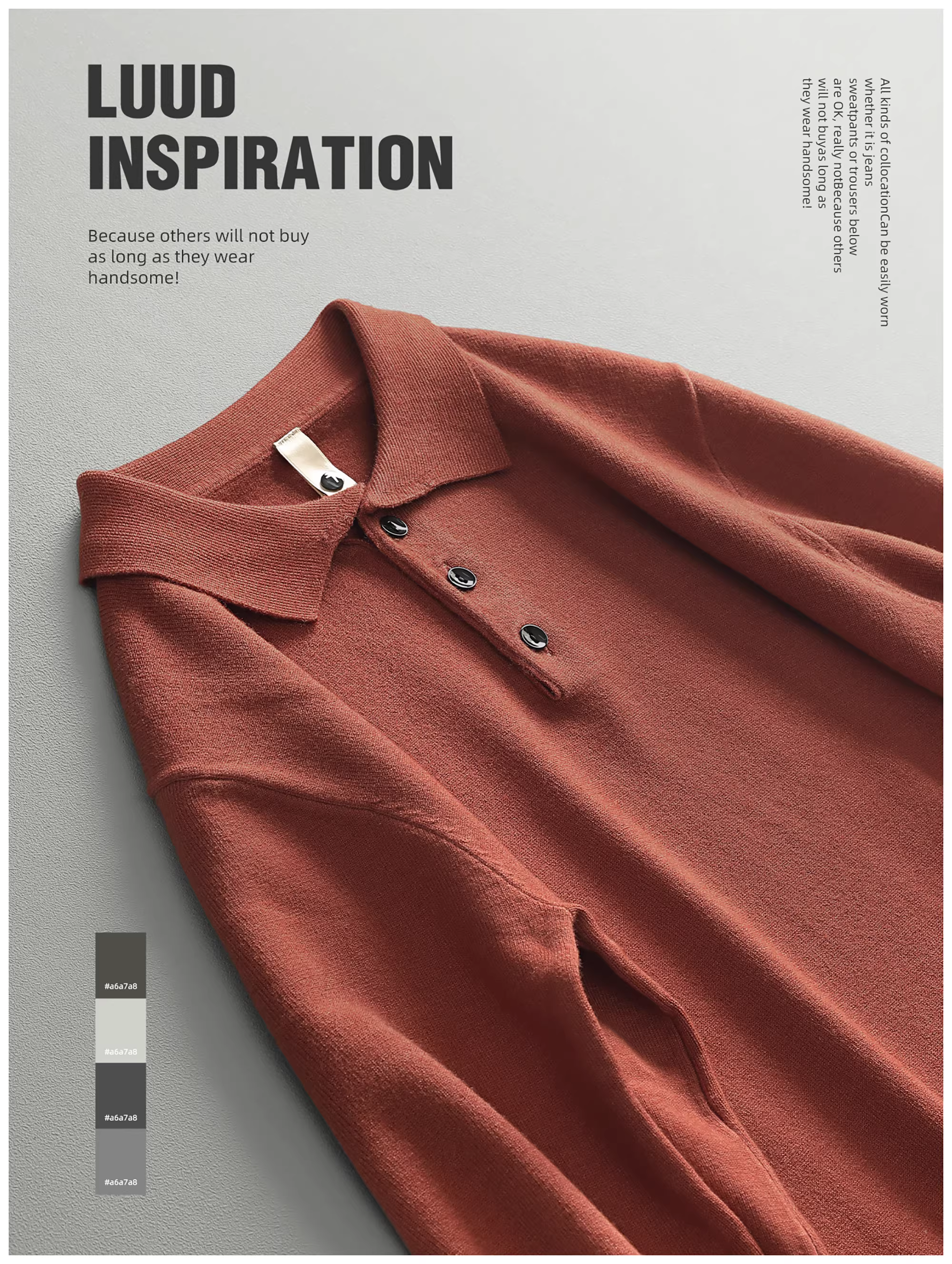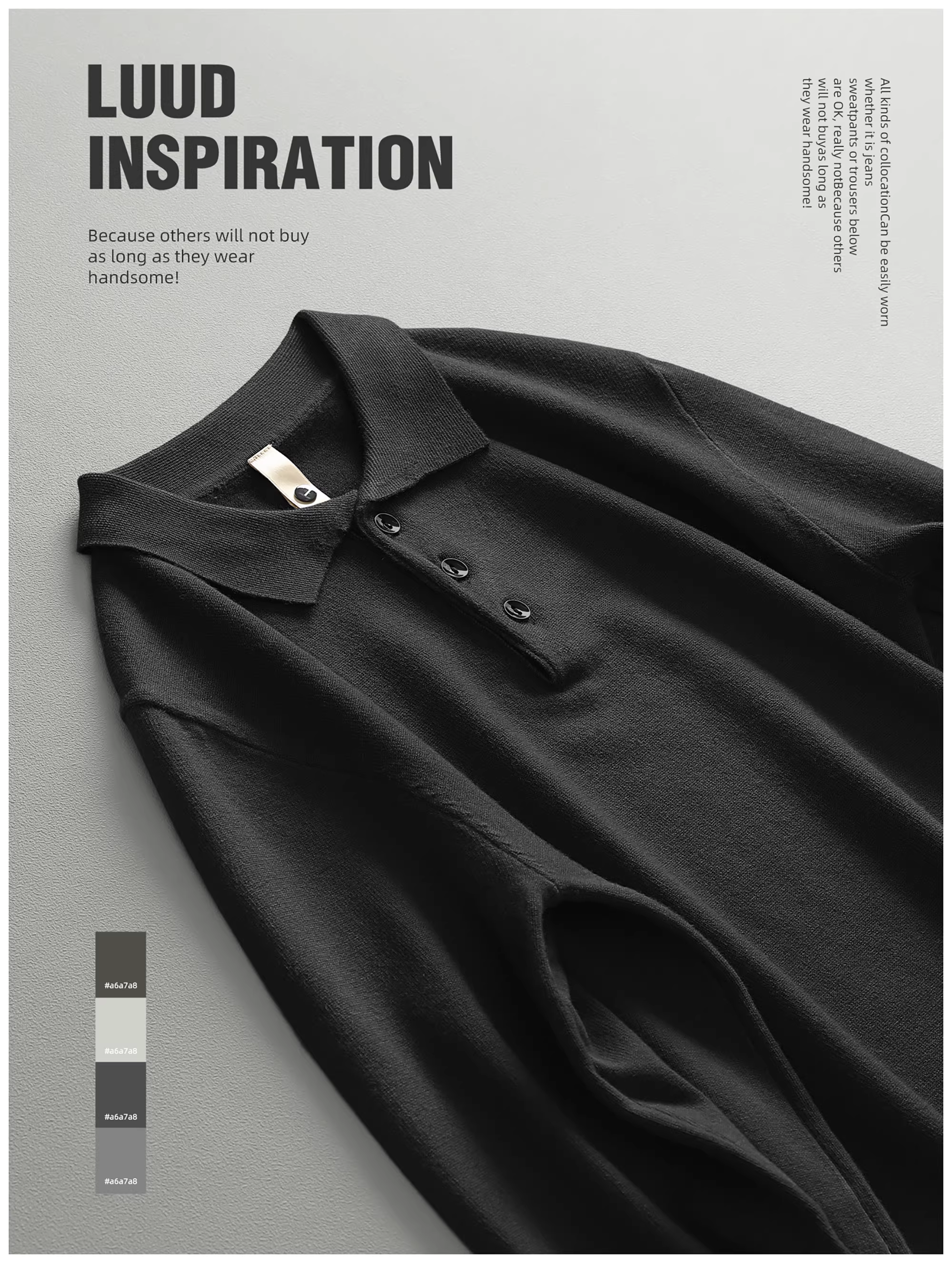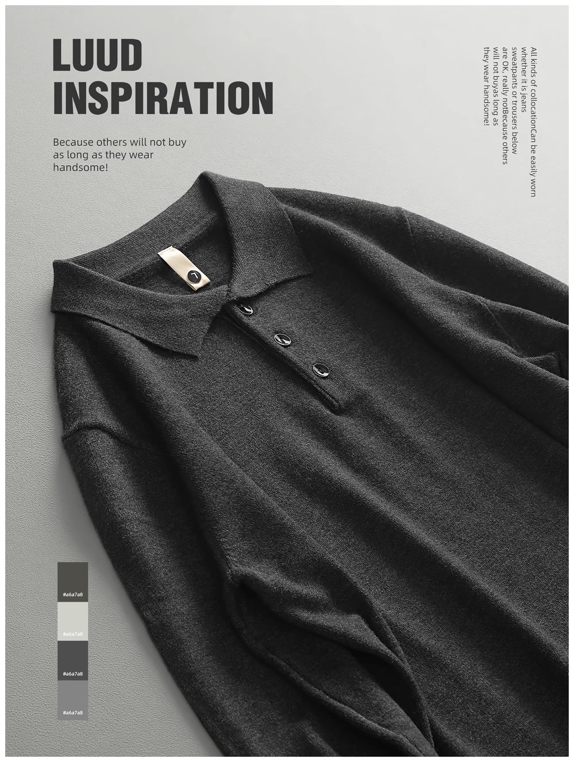 - LUUD Modal Màu trơn Đơn giản dành cho nam Slim Fit Áo dệt kim có cổ áo len sợi nhiệt Áo len ấm áp Phong cách mùa thu đông