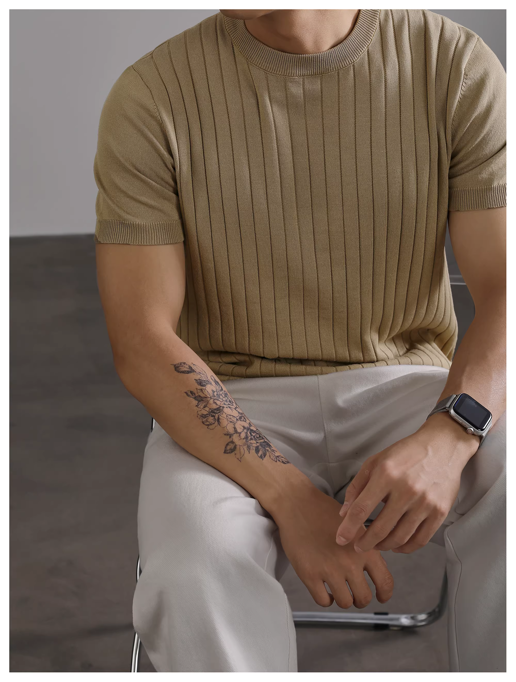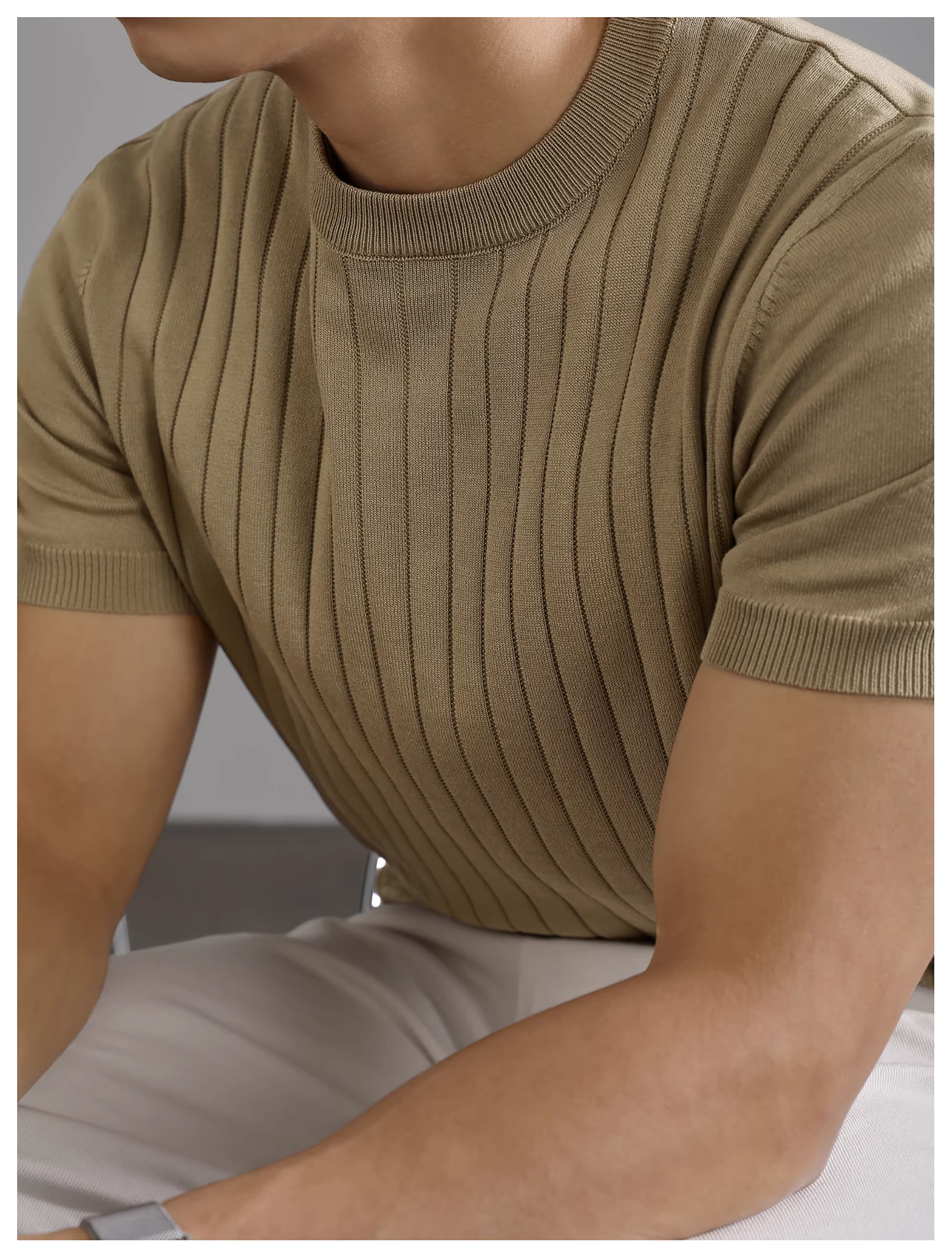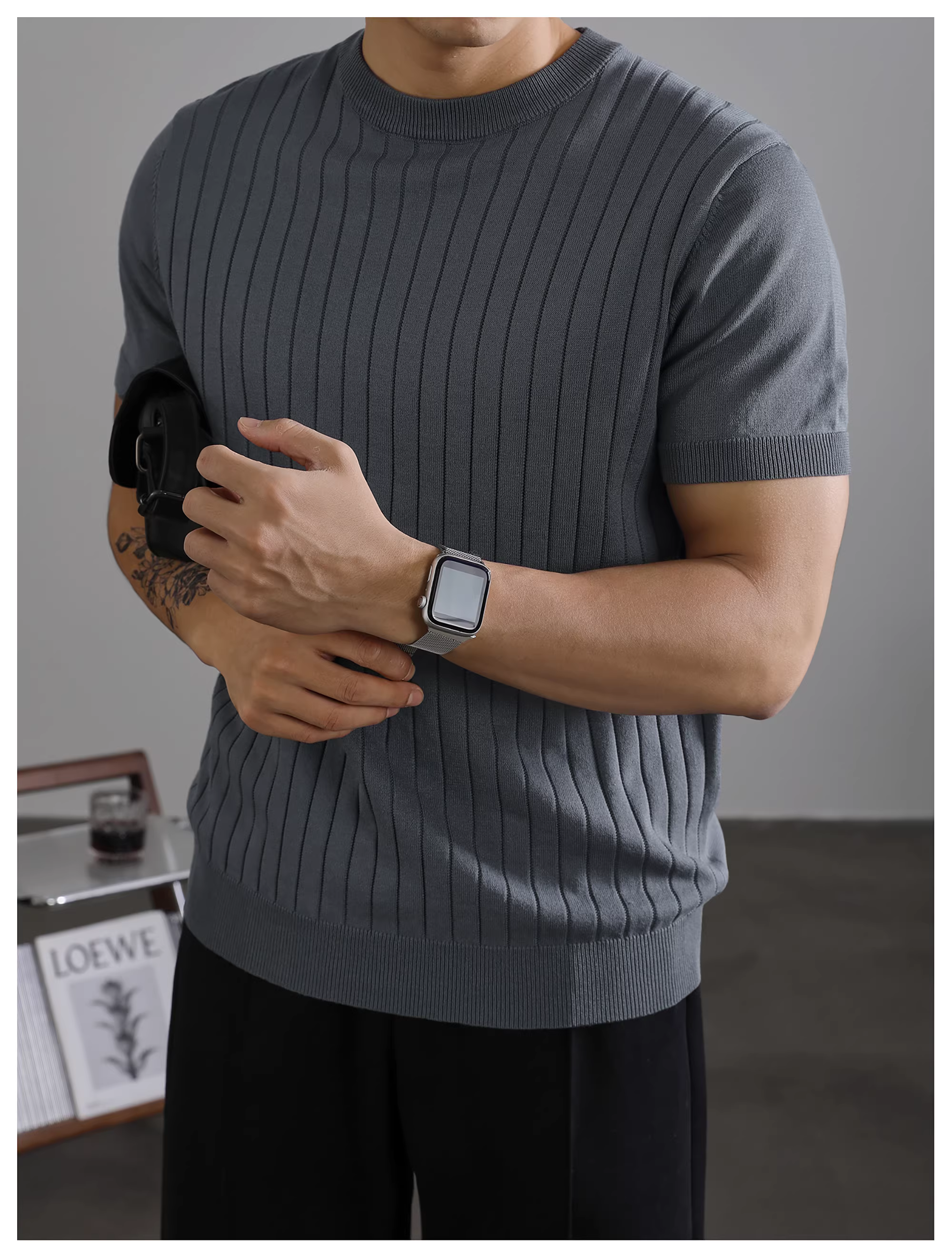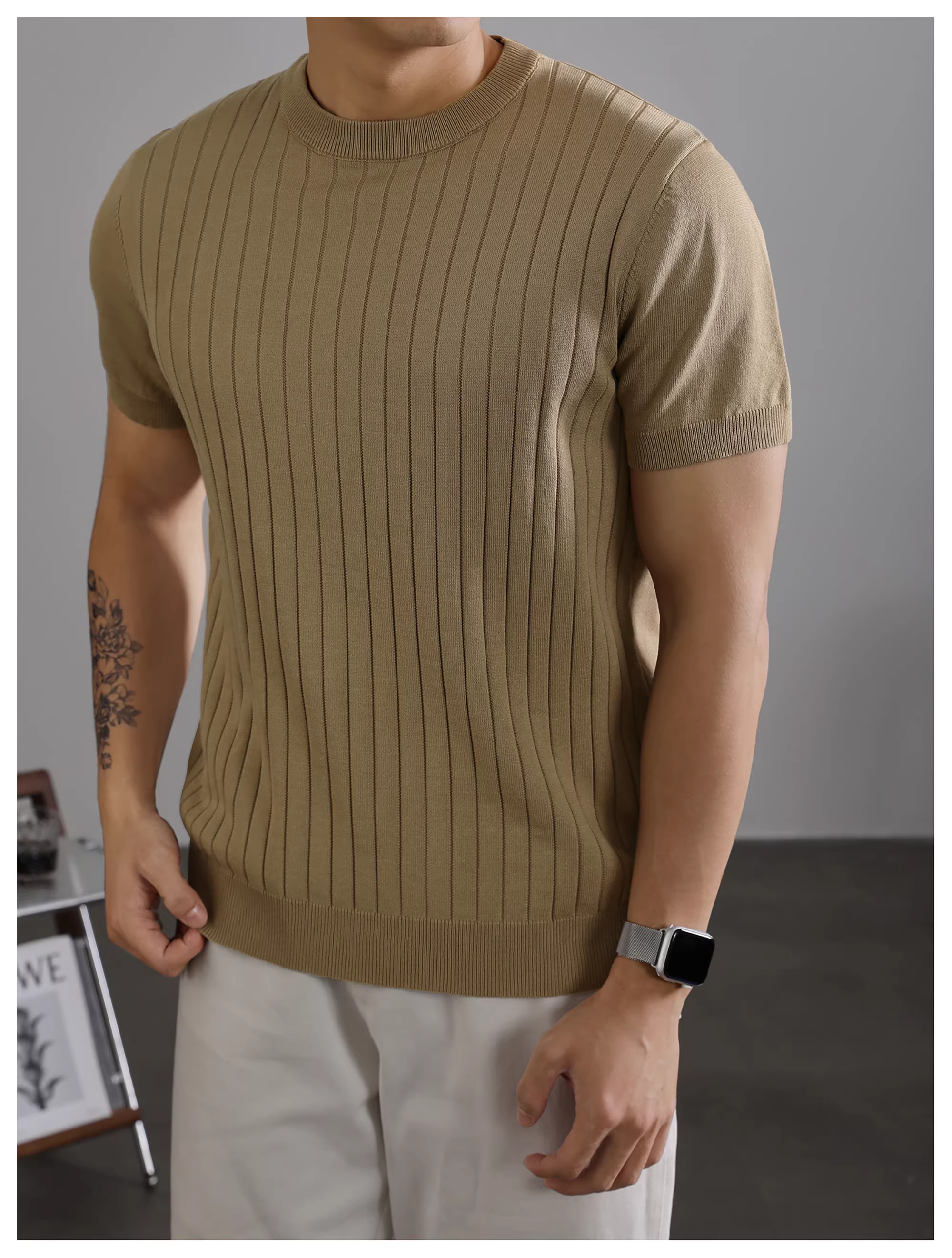 - LUUD Nam Mùa Hè Mỏng Thoáng Khí Dệt Kim Cổ Tròn Tay Ngắn Đơn Giản Thời Trang Gân Họa Tiết Màu Trơn Áo Thun Top