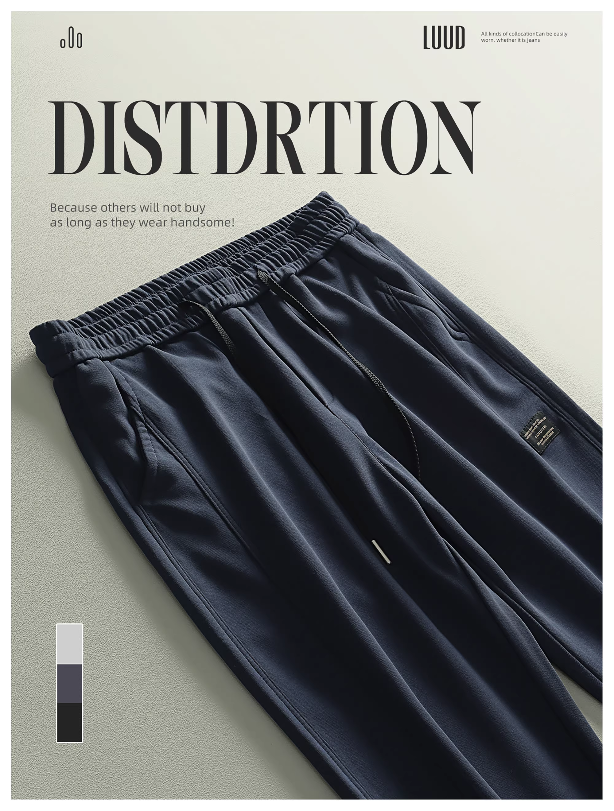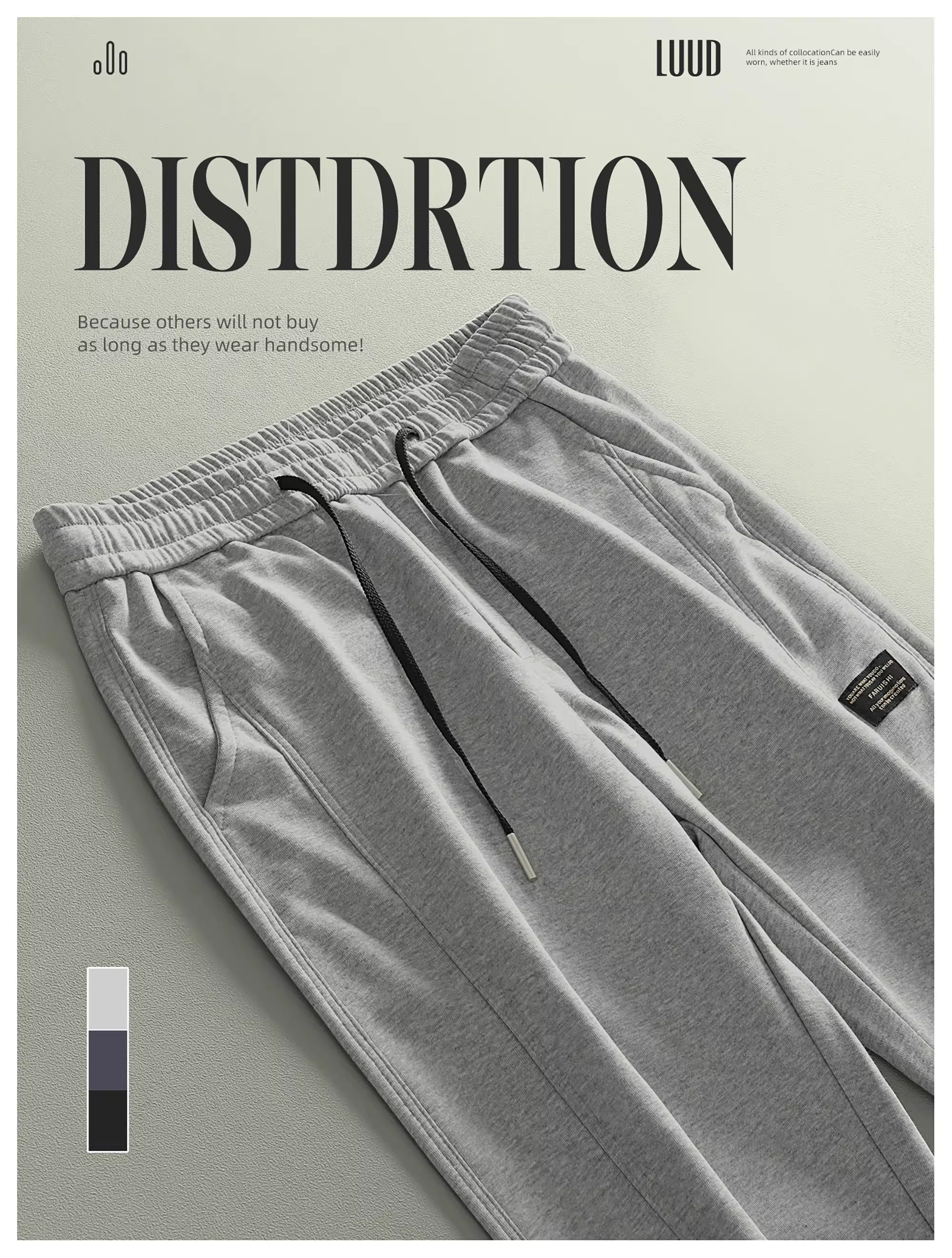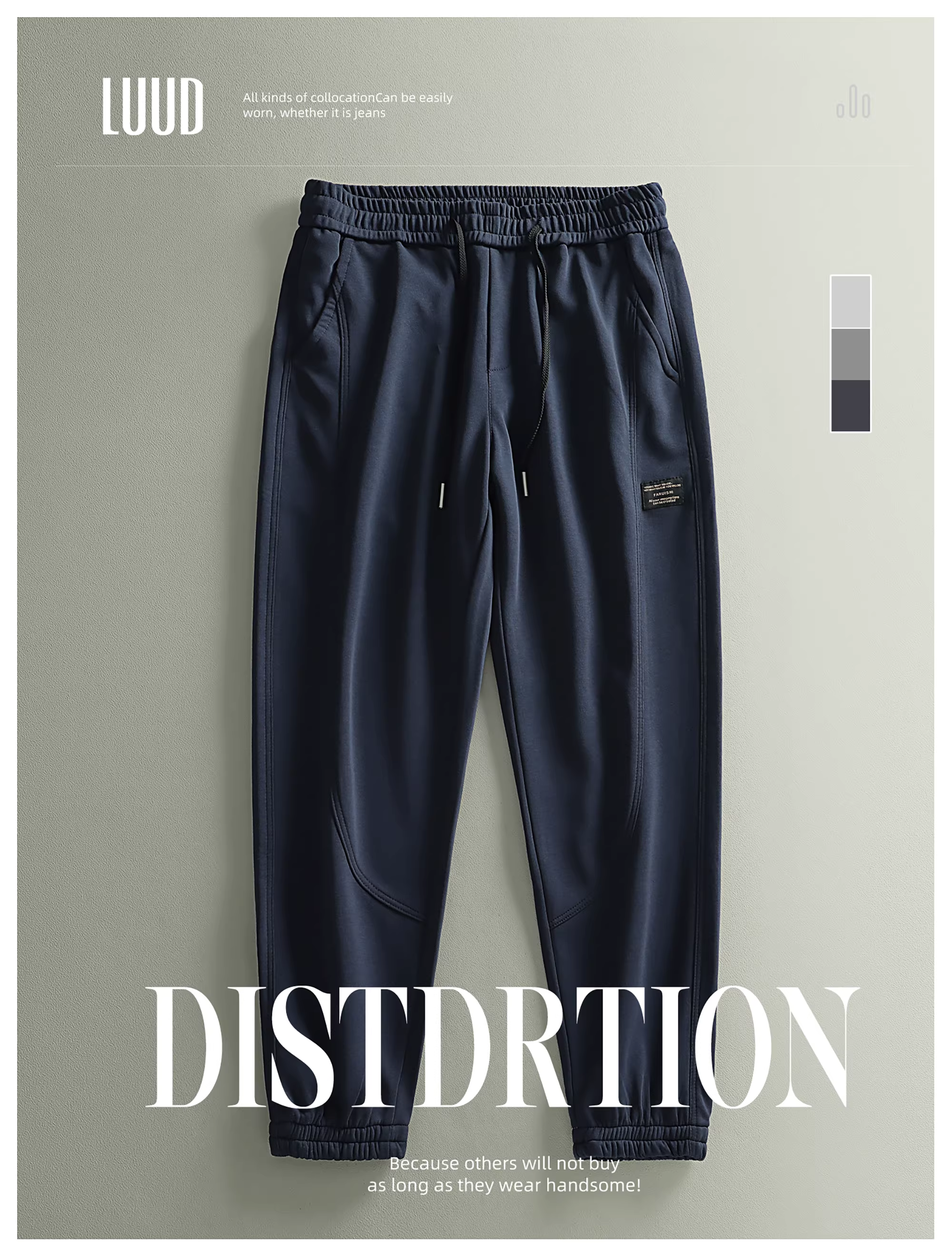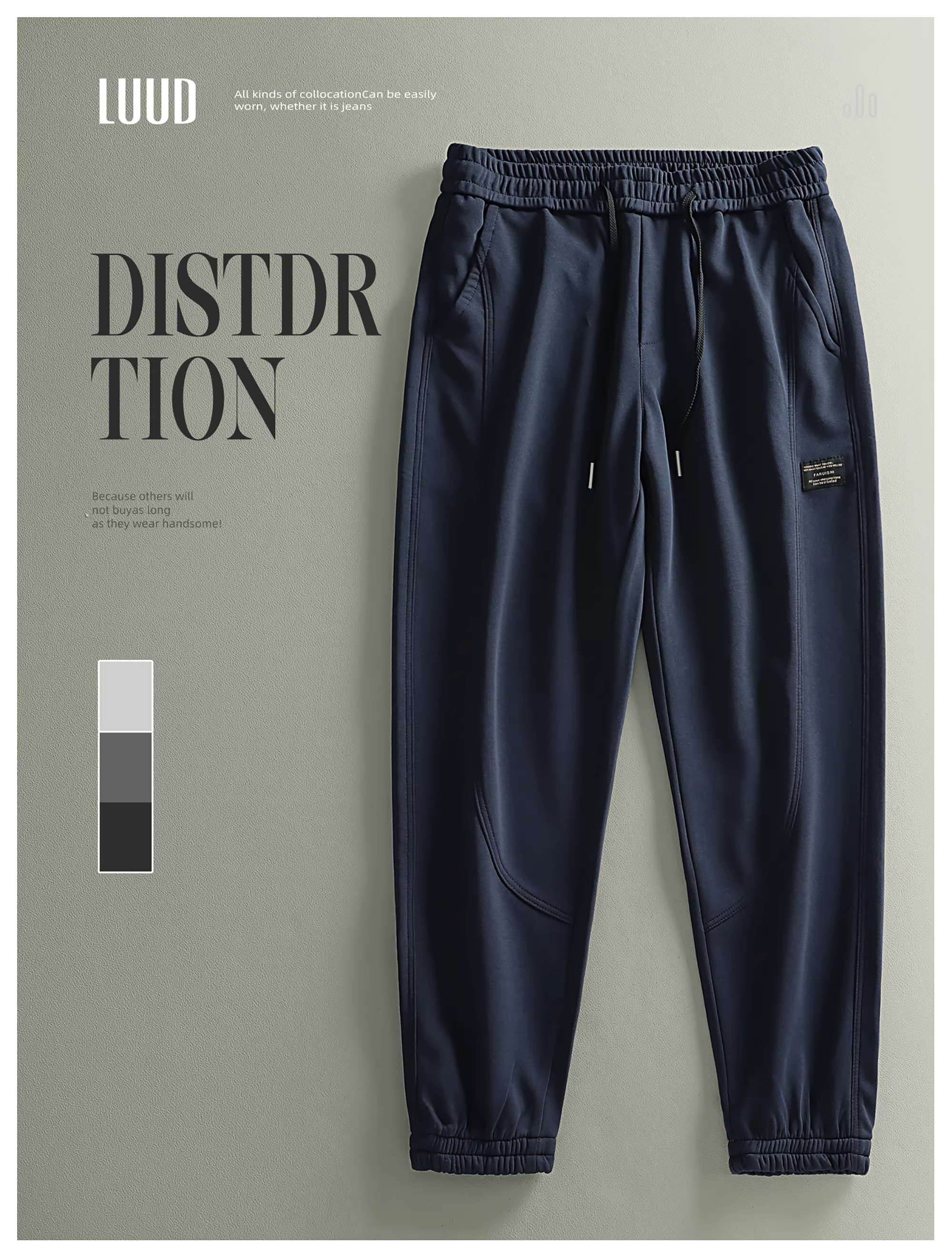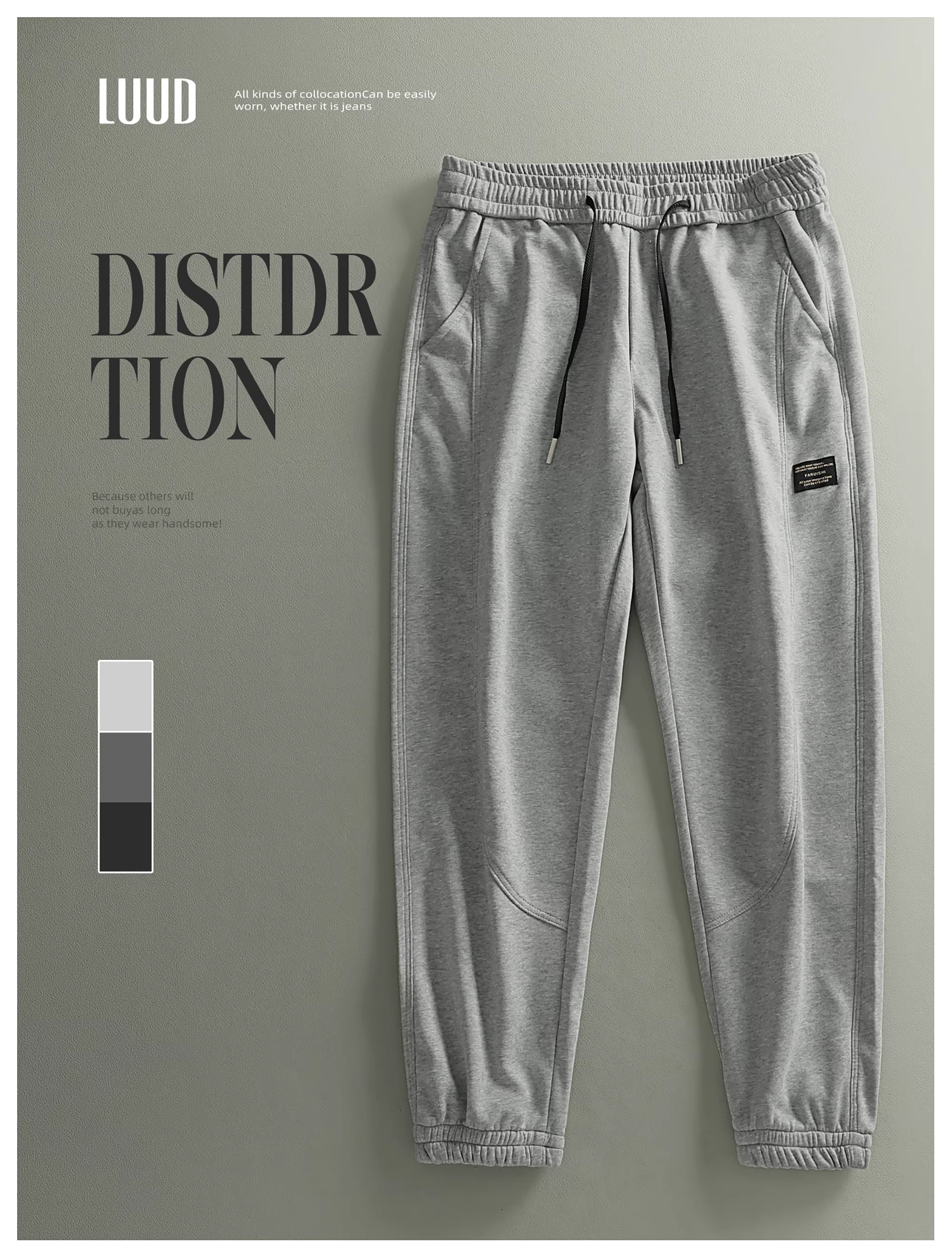 - LUUD nhãn hiệu nhỏ quần thể thao dây rút thời trang nam quần thẳng quần âu đơn giản màu trơn đa năng quần jogger