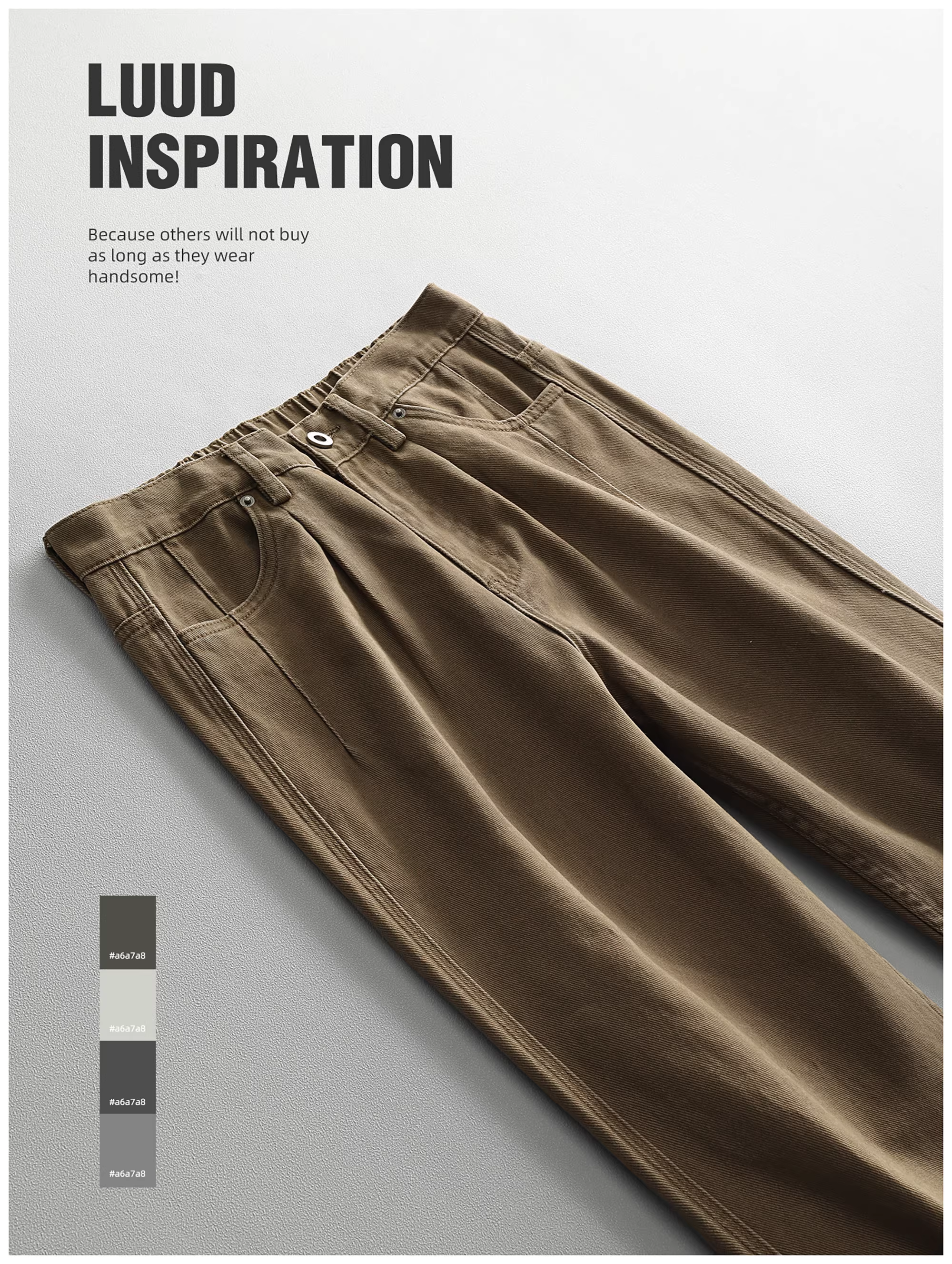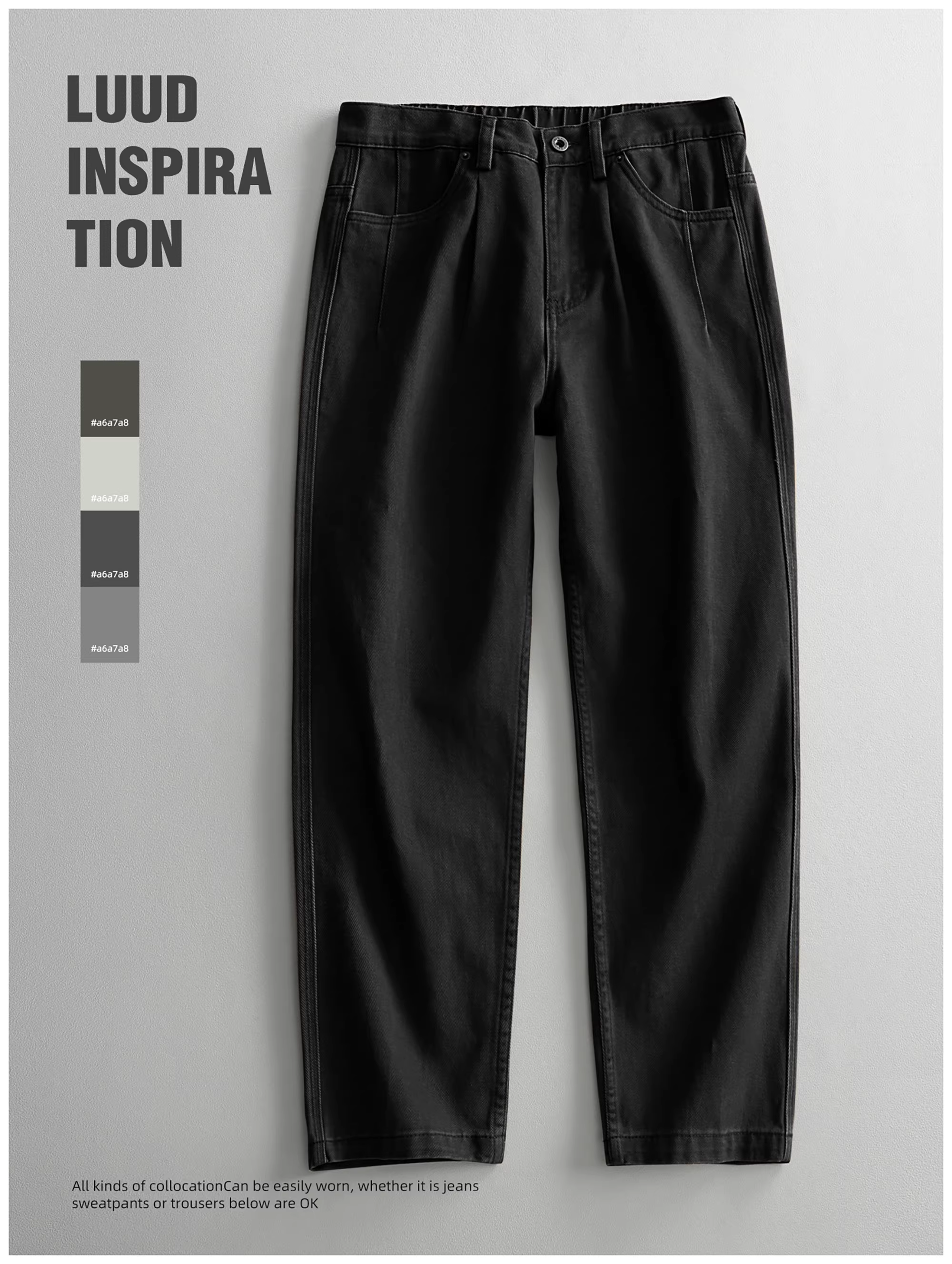 - LUUD Quần cotton 100% nguyên chất kiểu vintage dành cho nam, quần ống đứng được giặt và làm cũ theo phong cách mùa thu, quần dài màu trơn hợp thời trang