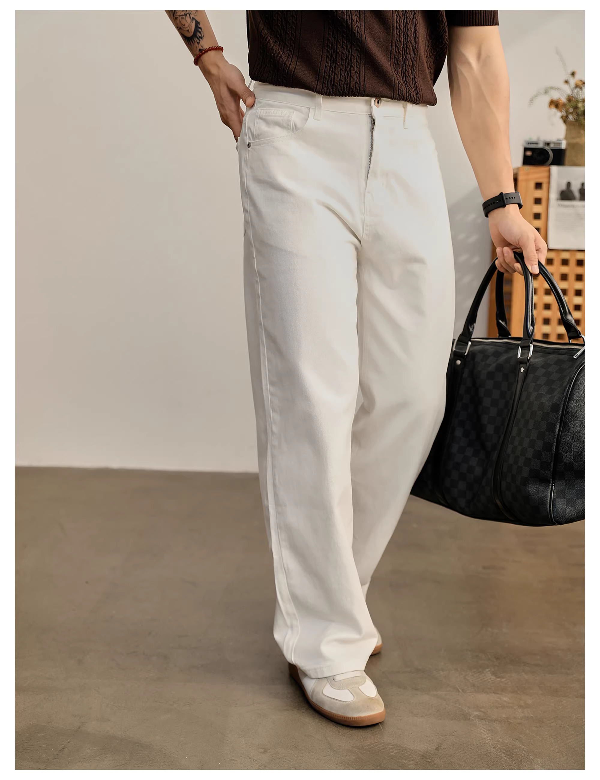 LUUD Quần dài ống rộng 100% cotton nguyên chất kiểu Mỹ phong cách retro dành cho nam giới thời trang mùa hè Quần jean thẳng phong cách Hàn Quốc