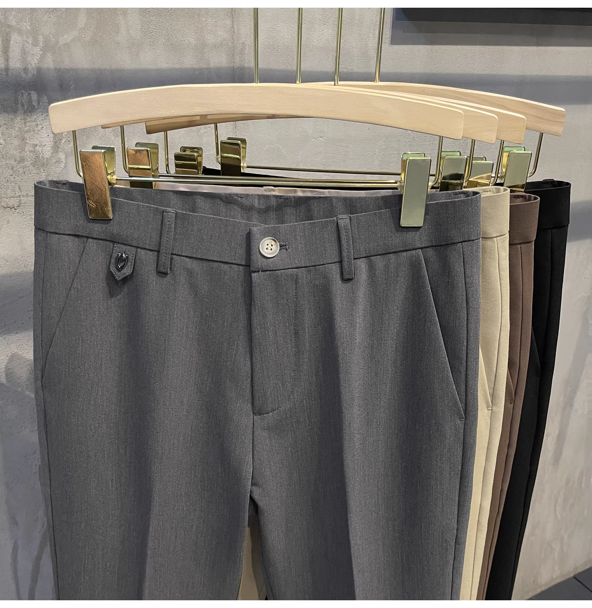 - LUUD quần ống côn màu trơn giản dị phong cách Anh quốc không cần ủi quần tây ống thẳng nhỏ phong cách Hàn Quốc quần dài nam dáng ôm