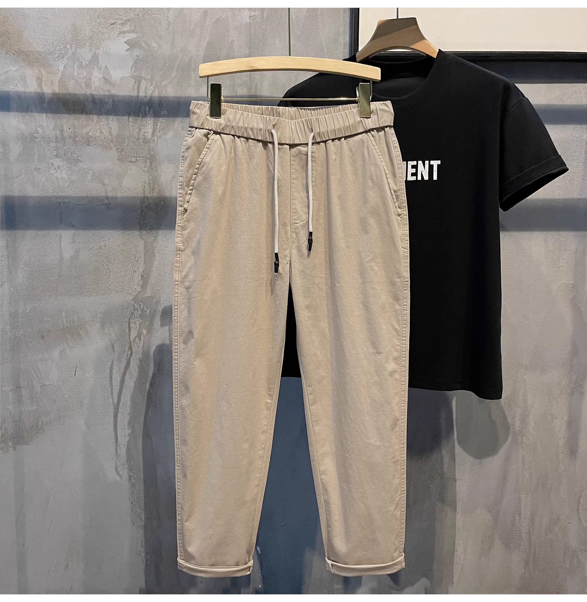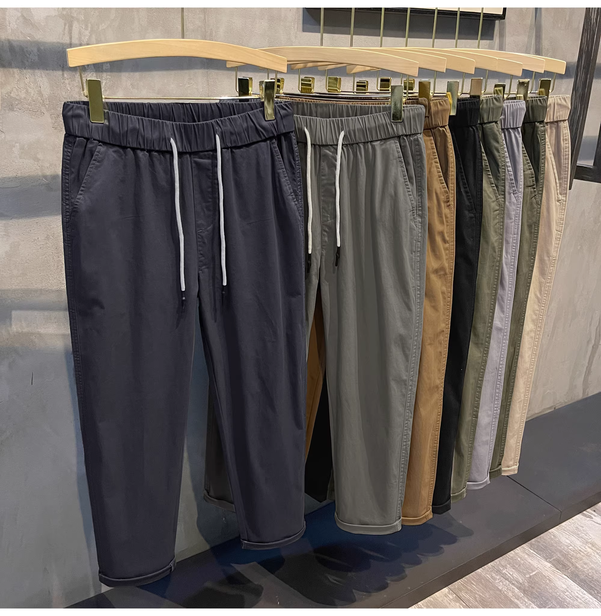 LUUD Quần ống đứng phong cách Hàn Quốc dành cho nam, quần ống côn kiểu dáng cổ điển có dây rút thun ở eo hợp thời trang.