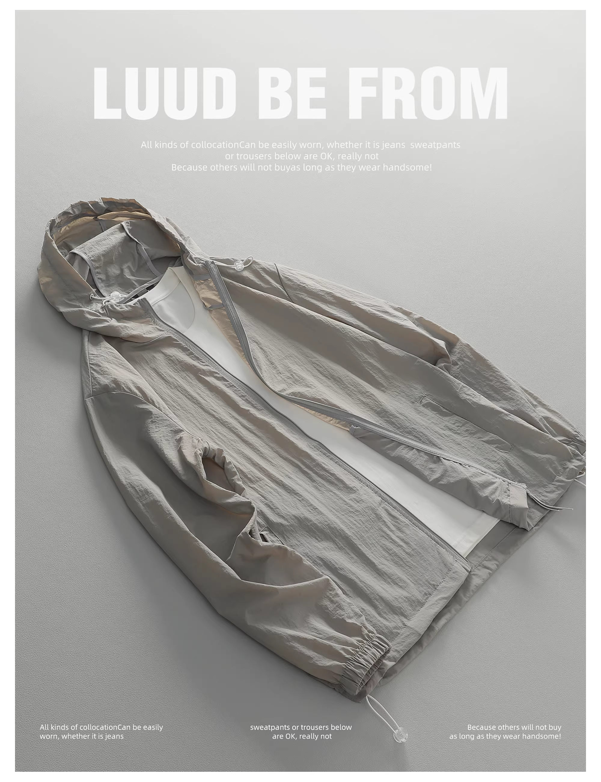 LUUD Youth Trend Nhiều màu sắc ngoài trời Quần áo chống nắng nhẹ ngoài trời Quần áo chống nắng mùa hè Áo khoác có mũ trùm đầu dài tay chống tia cực tím cho nam