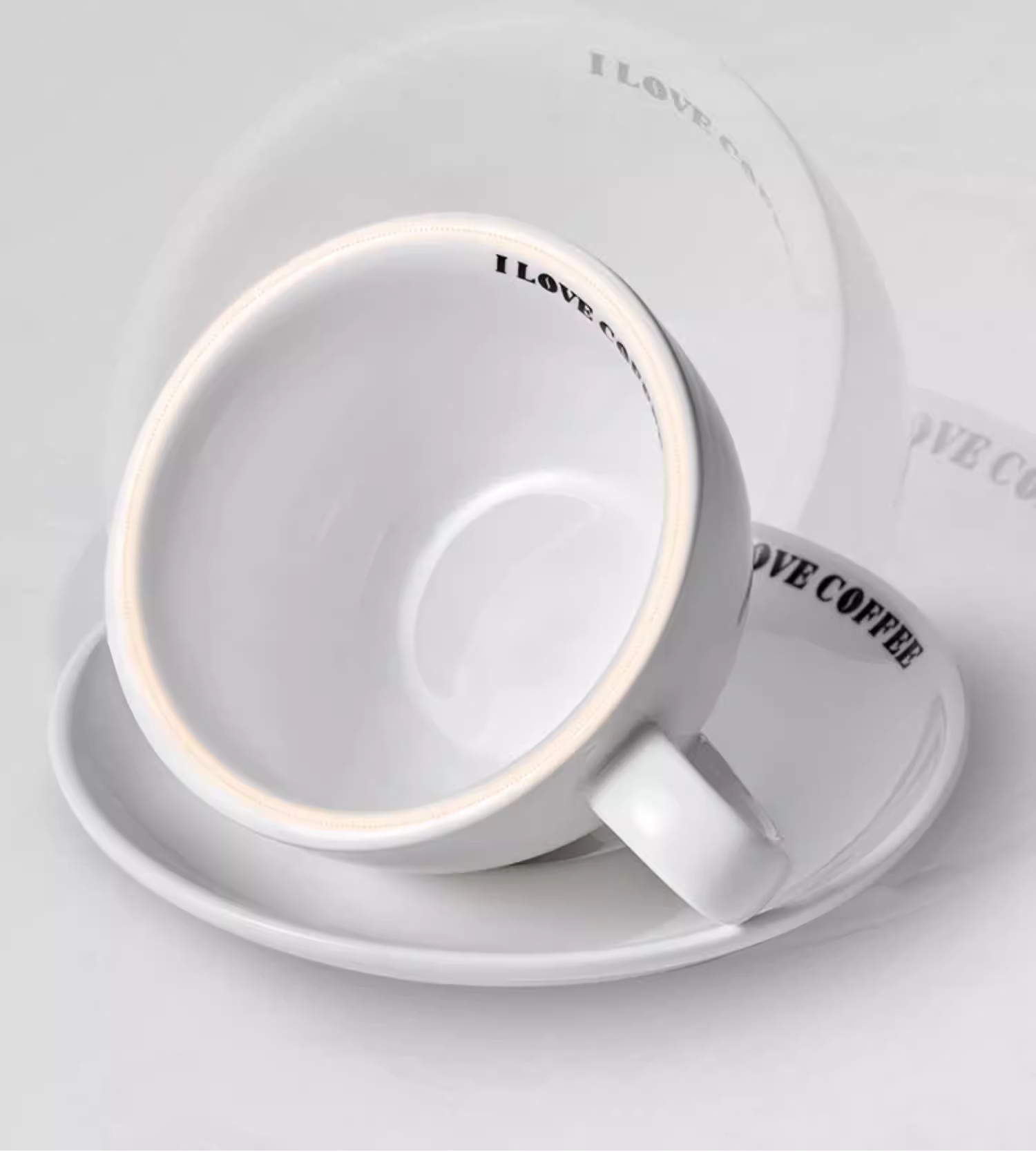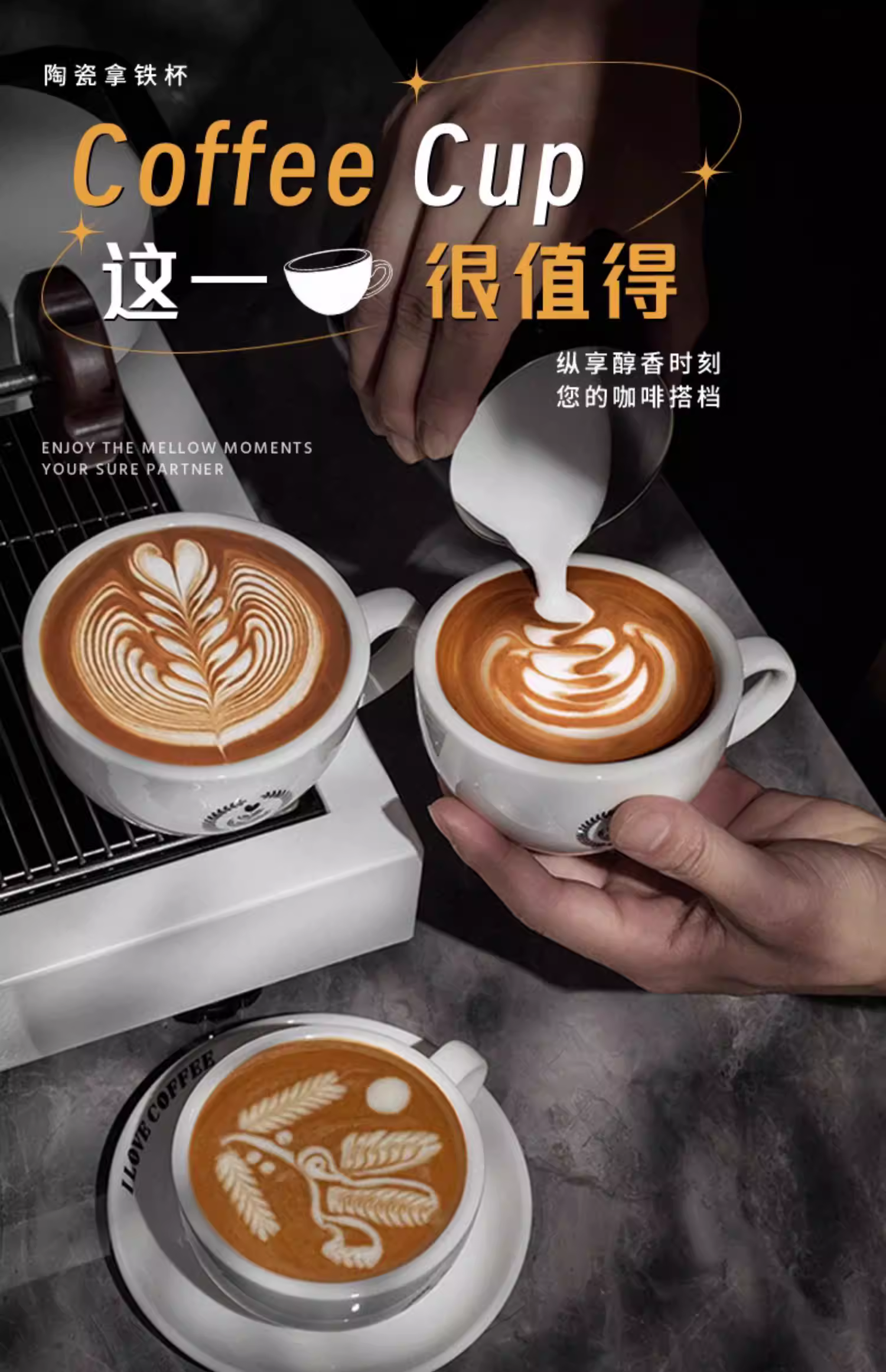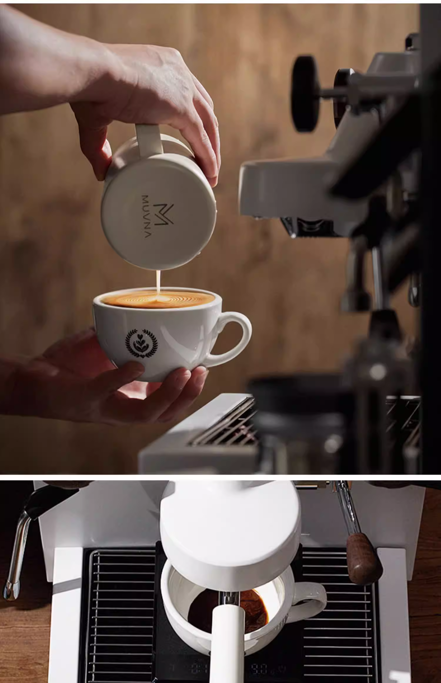 Ly cà phê gốm sứ MUVNA, ly latte nghệ thuật, ly cà phê latte hoa văn nổi, kèm đĩa, 220/280ml