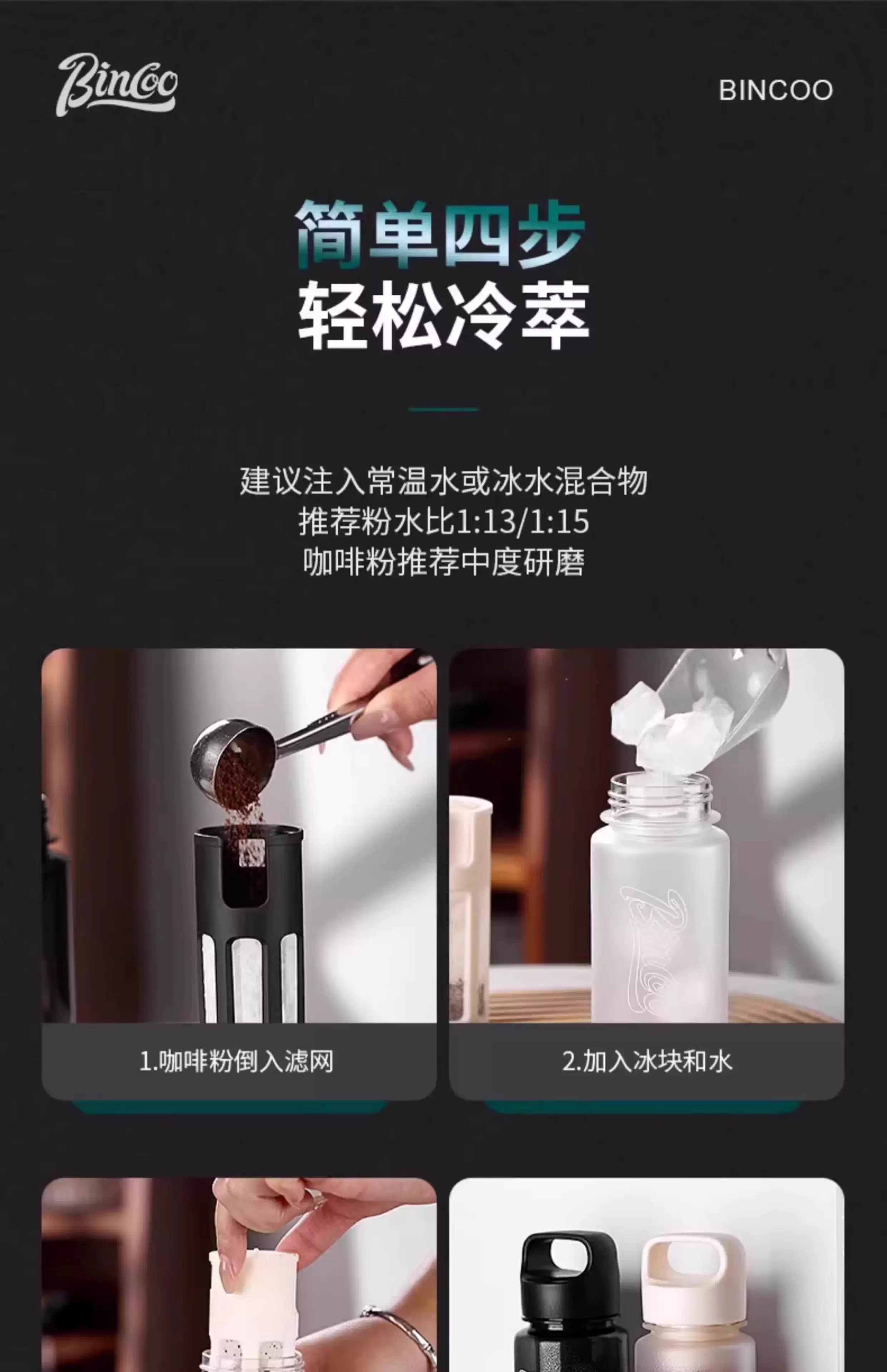 Ly cà phê pha lạnh Bincoo, bình pha cà phê lạnh, ly cà phê Tritan di động gia dụng, cốc nước du lịch có tay cầm, ly pha cà phê lạnh