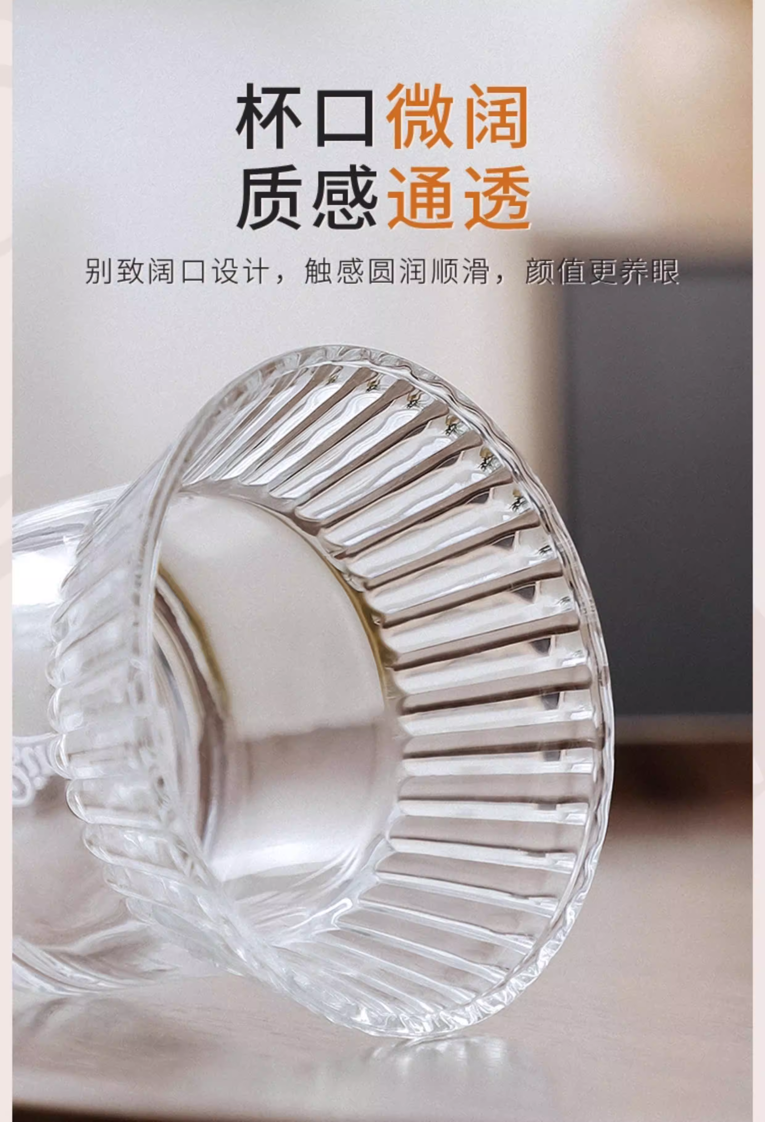 Ly cà phê thủy tinh Bincoo, ly latte trắng Úc đã qua sử dụng với họa tiết latte đẹp, ly nước retro sọc dọc đơn giản
