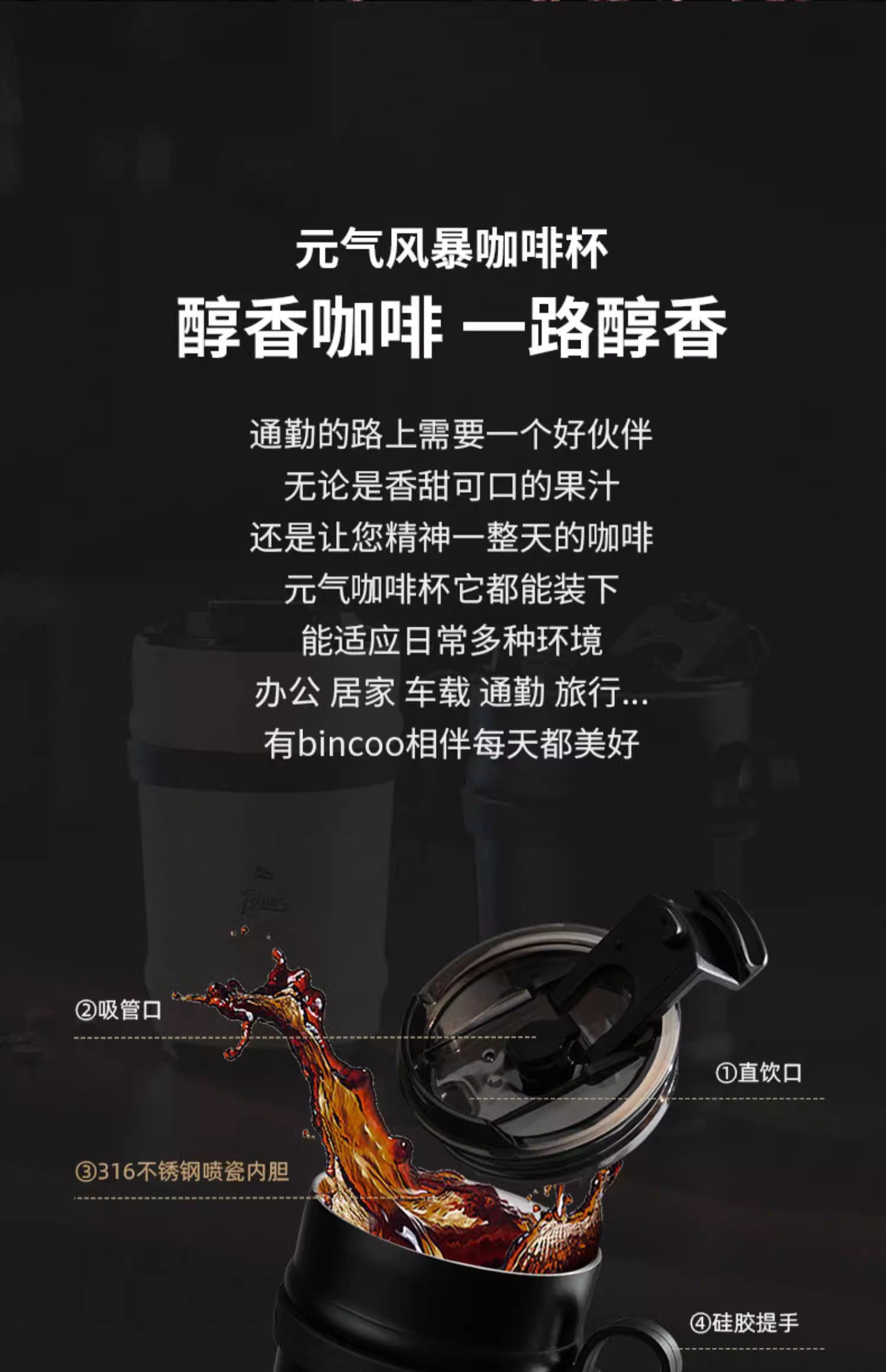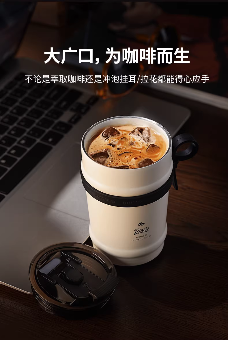 - Ly giữ nhiệt cà phê gốm Bincoo, bình giữ nhiệt du lịch di động cho nam và nữ, ly giữ lạnh bằng thép không gỉ 316
