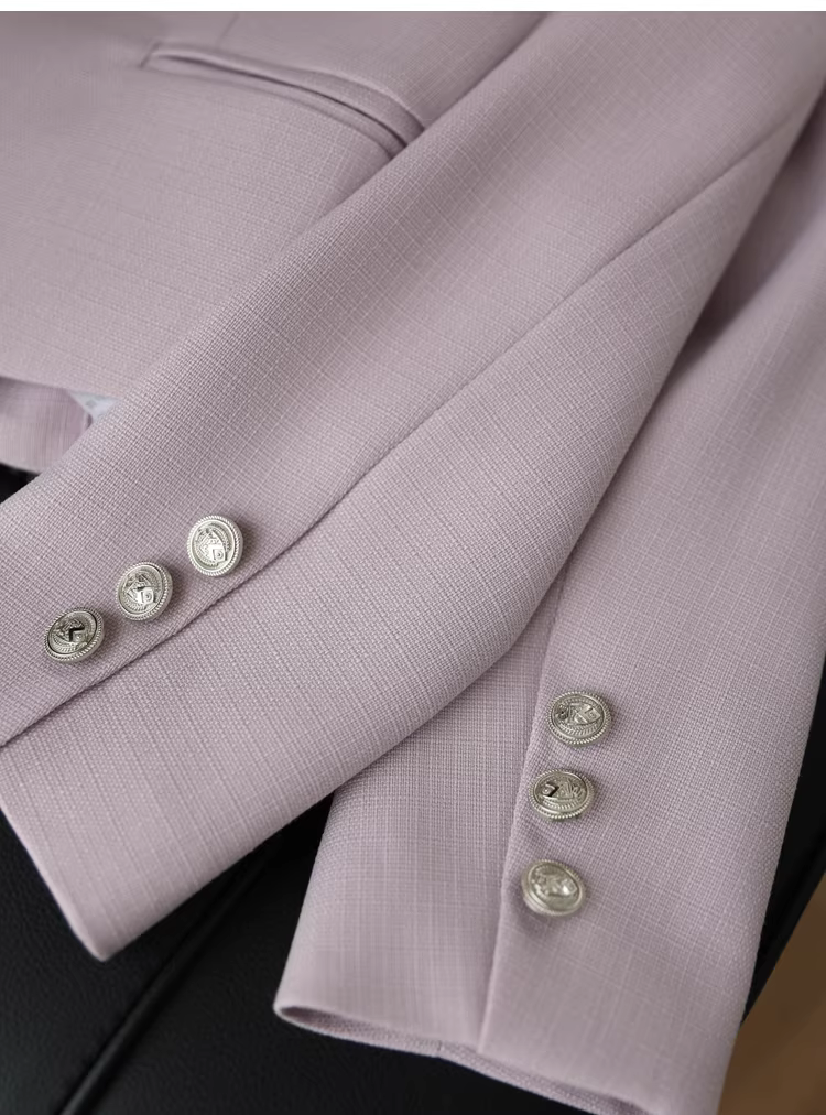- Mặc nó để tạo dáng đẹp: Áo blazer ngắn có nút nổi màu hoa cà và bạc dành cho người nhỏ nhắn, phong cách xuân hè mới.