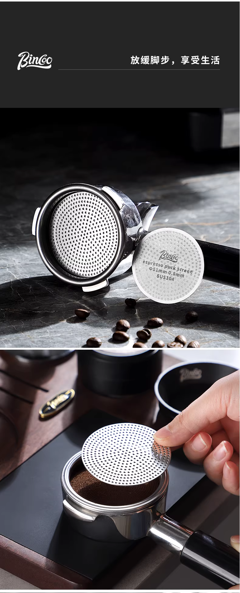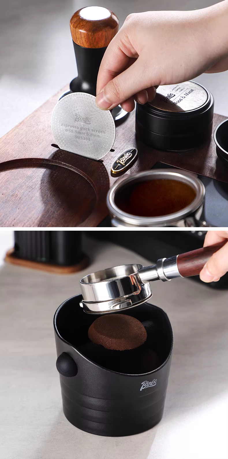 - Màng lọc chiết xuất đồng đều bằng thép không gỉ Bincoo, tay cầm máy pha cà phê, khay đựng bột, tấm lọc nung kết