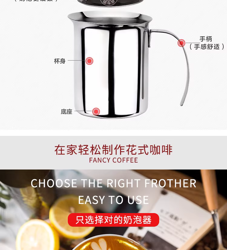 - Máy đánh bọt sữa cà phê thủ công, tạo bọt cà phê đá, máy đánh bọt sữa hai lớp bằng thép không gỉ, bình đánh bọt sữa 400ml/800ml