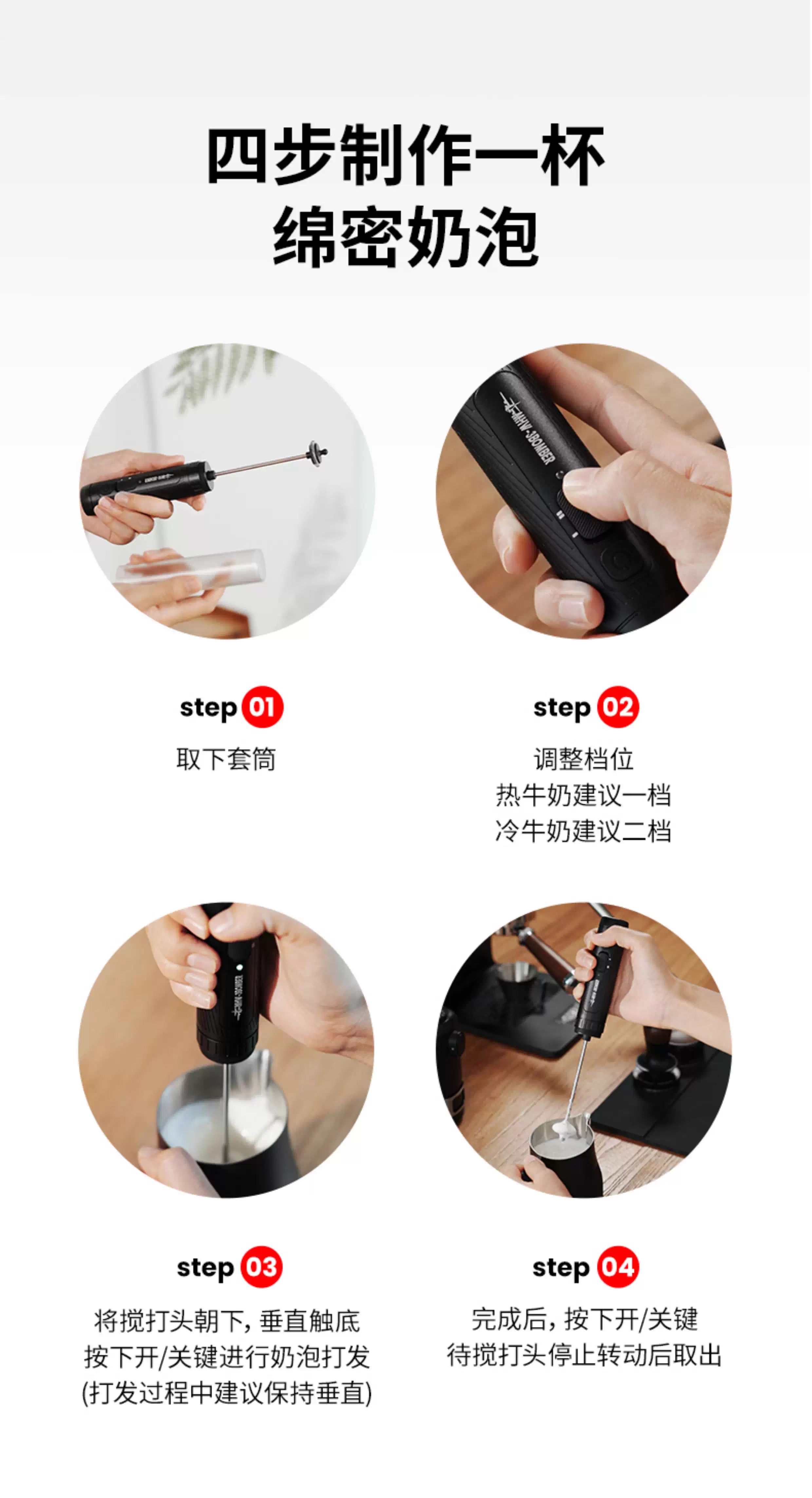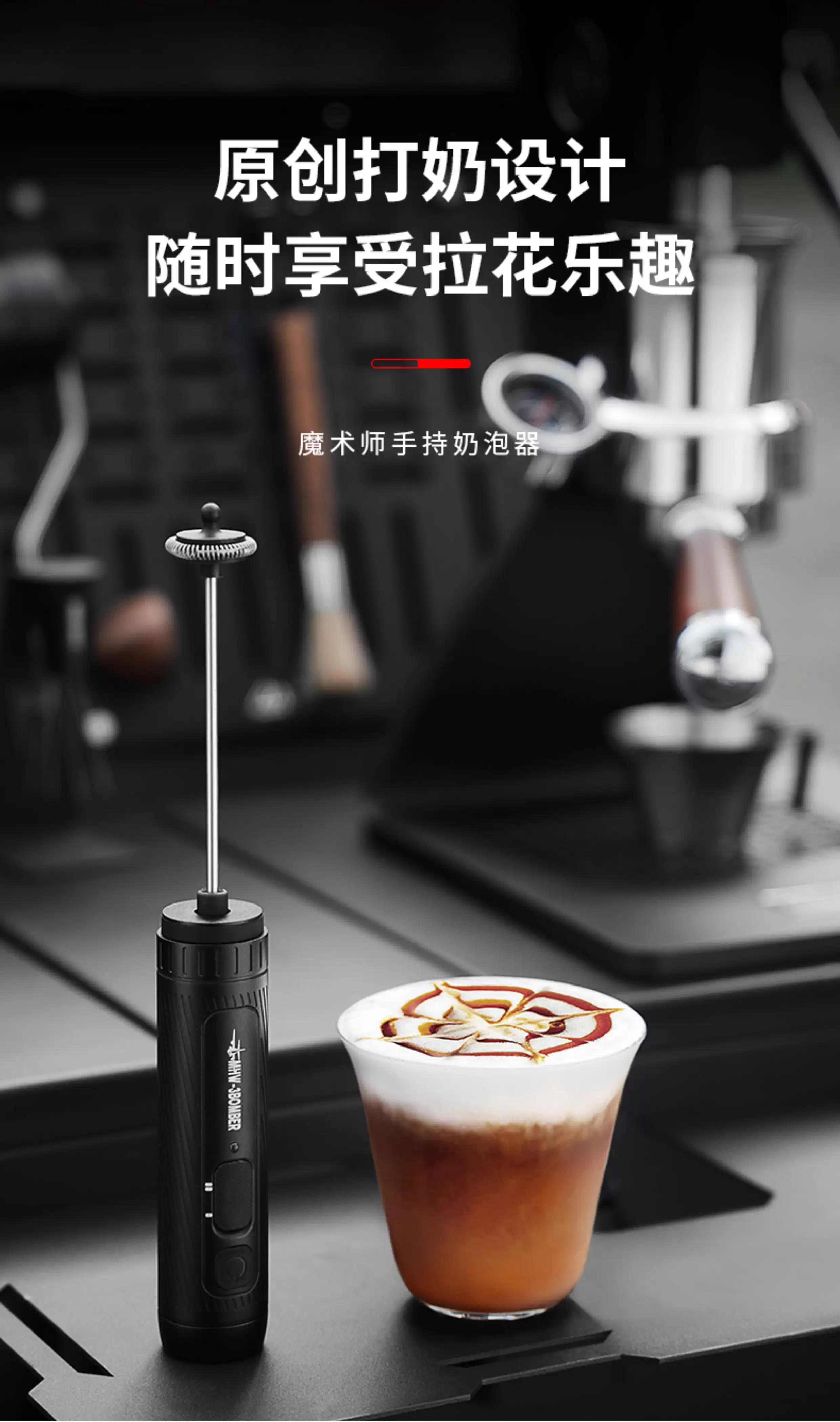 Máy đánh bọt sữa cầm tay điện MHW Bomber Magician, dụng cụ tạo bọt sữa, kem, đánh trứng cho cà phê Latte Art