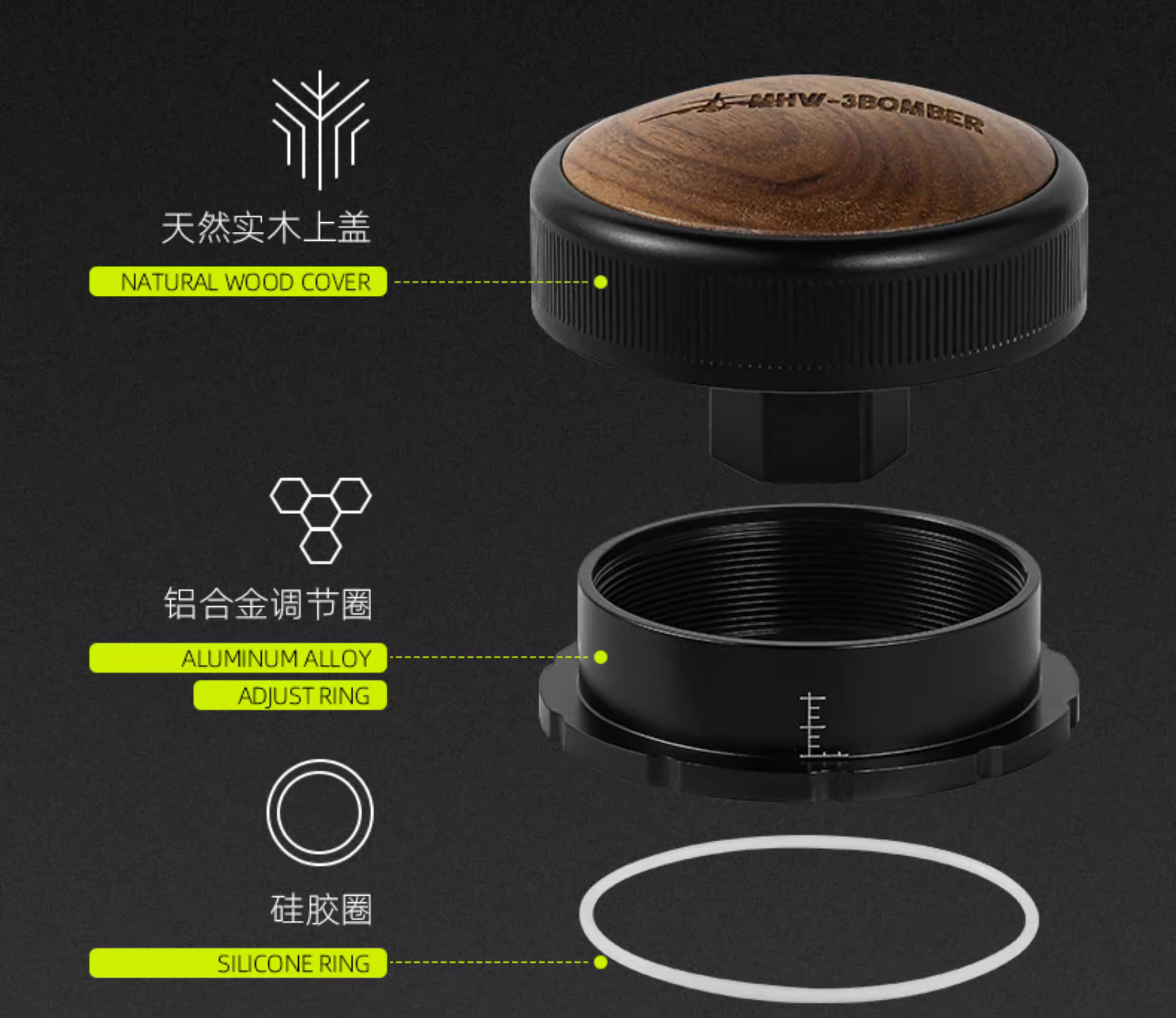 - Máy ép cà phê tự động điều chỉnh chiều cao Bomber Hurricane Gravity Powder Distributor 58mm, kiểu Ý