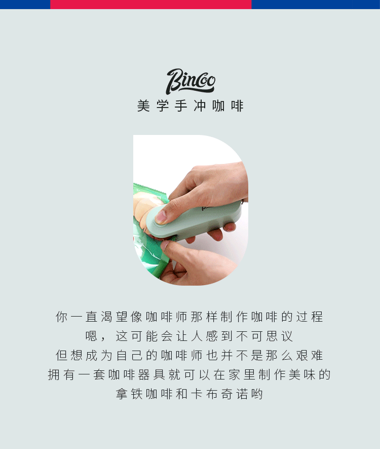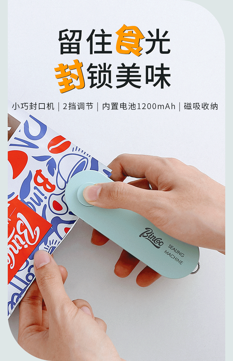 Máy hàn miệng túi giấy lọc Bincoo mini, máy hàn nhựa nhỏ, máy hàn miệng túi đồ ăn nhẹ bằng tay, dụng cụ thần kỳ