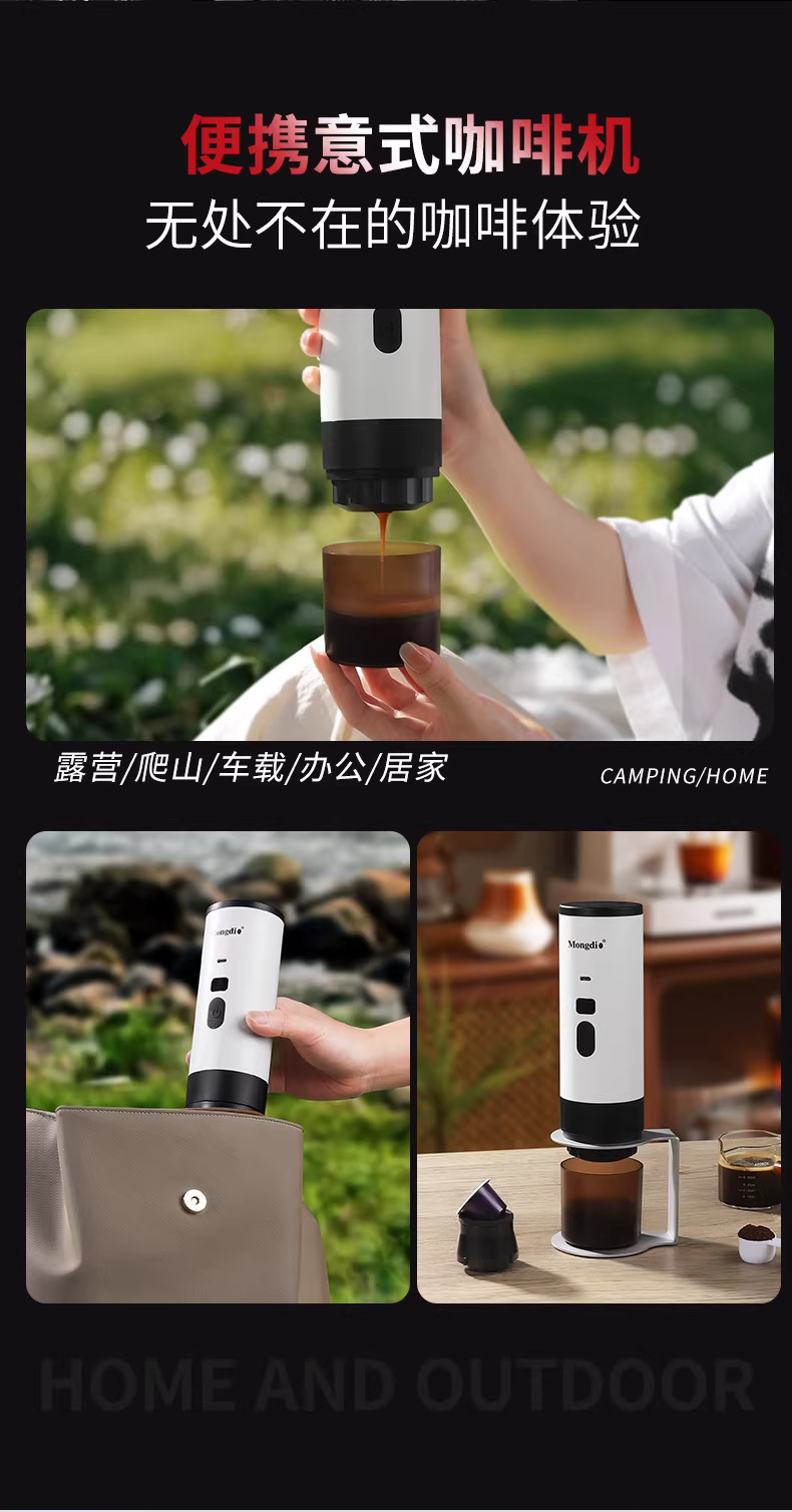 - Máy pha cà phê di động Mongdio, sử dụng viên nén, chiết xuất espresso, điện, dùng được ở nhà và ngoài trời