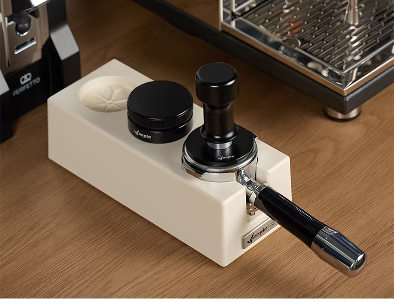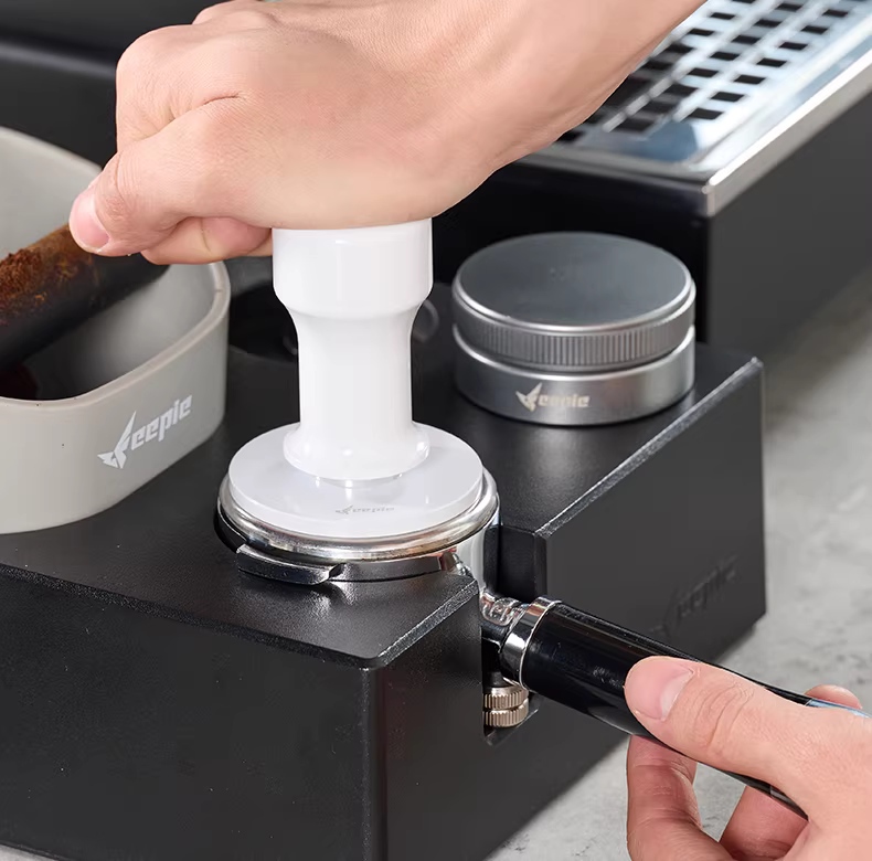 - Máy pha cà phê Feepie Coffee Tamper Platinum, tay cầm kiểu Ý, đầu phun dạng hạt sao, tay cầm đàn hồi 3 lớp, đường kính 53mm