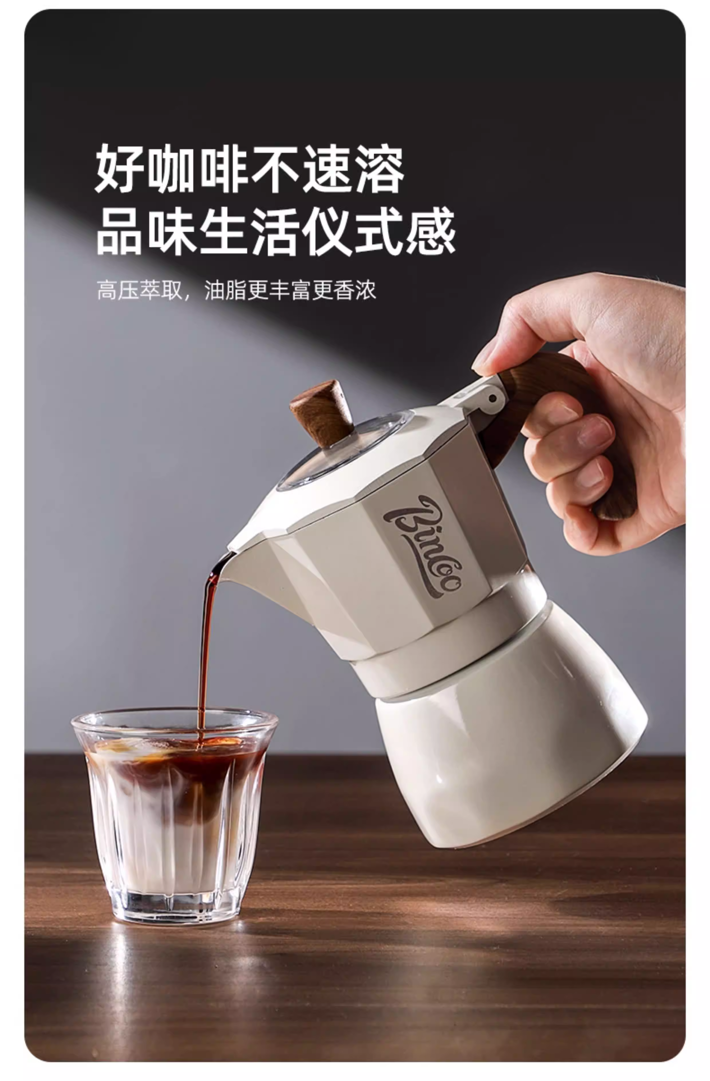 Máy pha cà phê kiểu Ý Bincoo hai van, sử dụng bếp điện, nhỏ gọn, tay quay, dành cho gia đình.