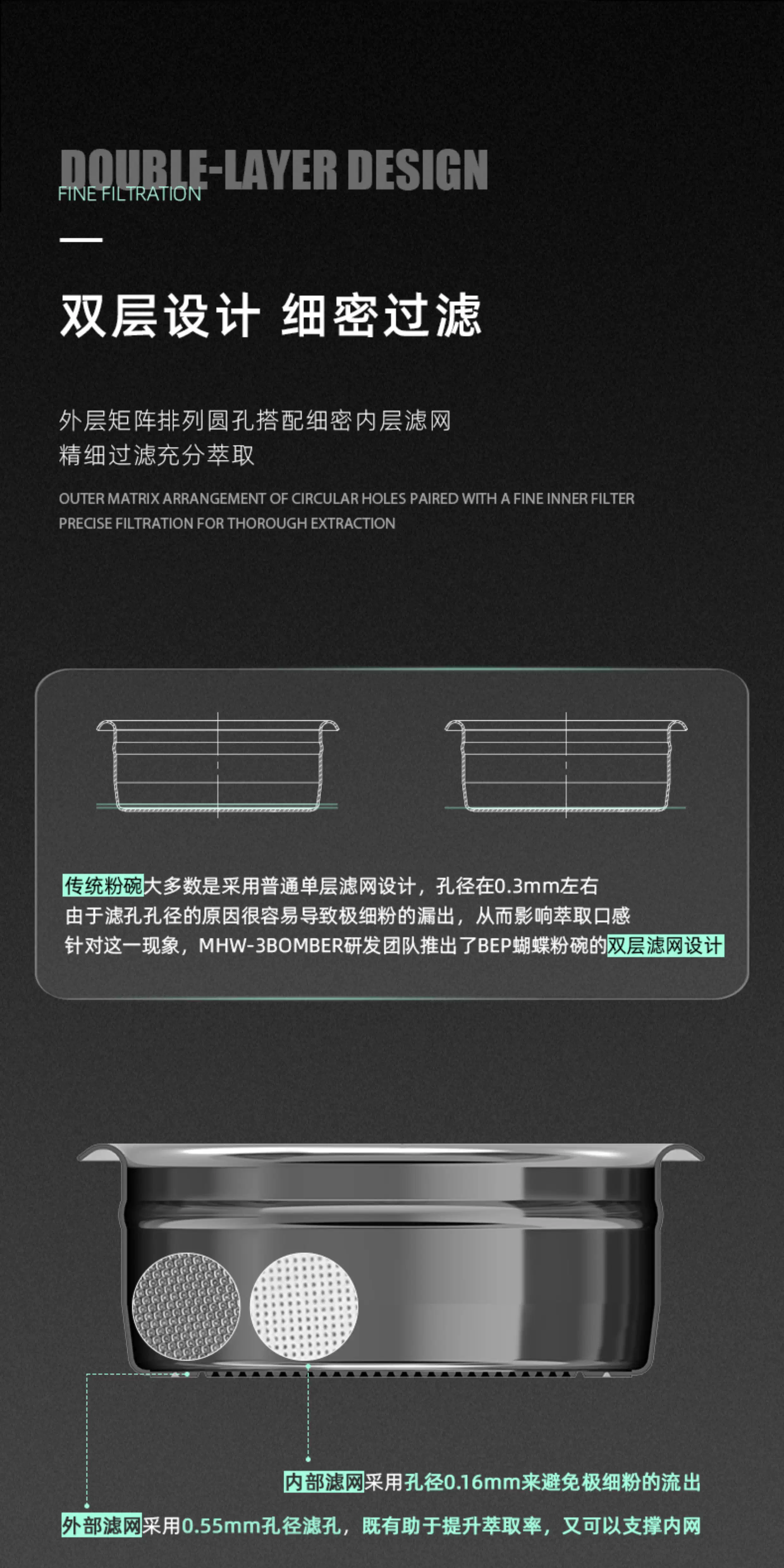 Máy pha cà phê MHW Bomber BEP Butterfly Powder Bowl 2.0, lọc kép chính xác, chiết xuất không đáy, 18/20/22g