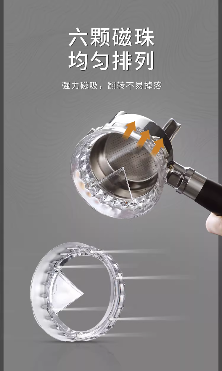 Máy pha cà phê Ý có tay cầm phân phối bột từ tính 51/58mm phổ biến trong suốt đặc biệt chống bắn tung tóe vòng thu gom bột tích hợp
