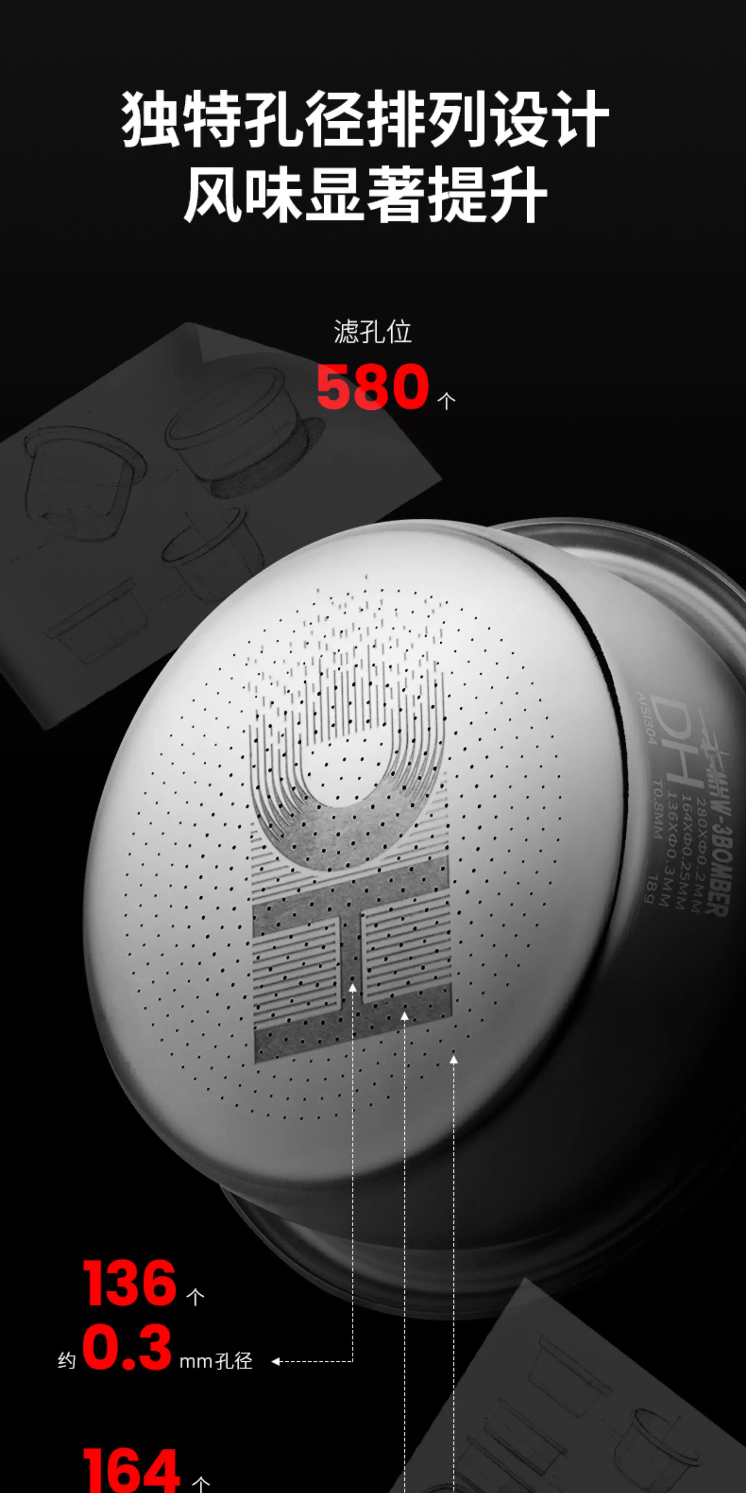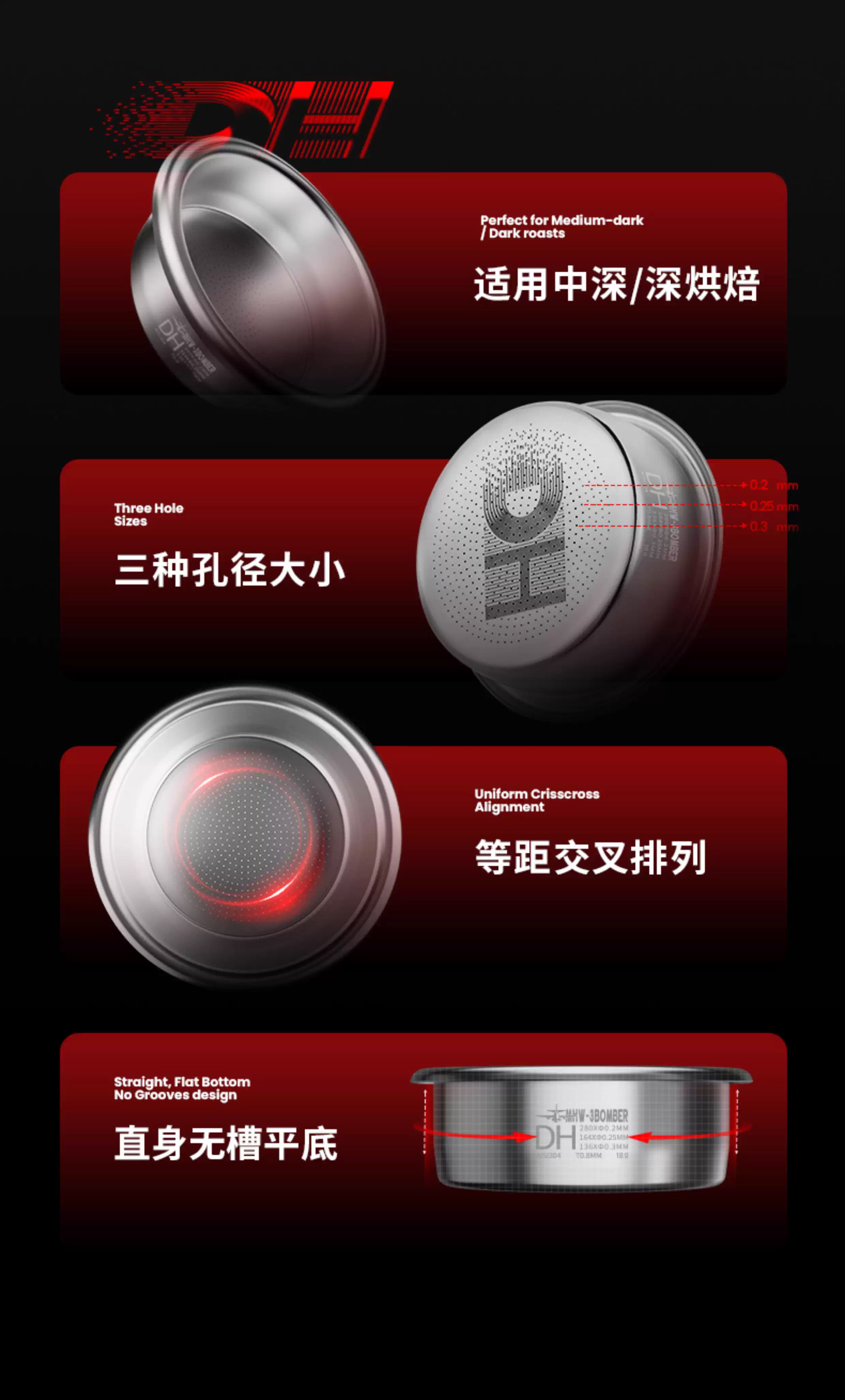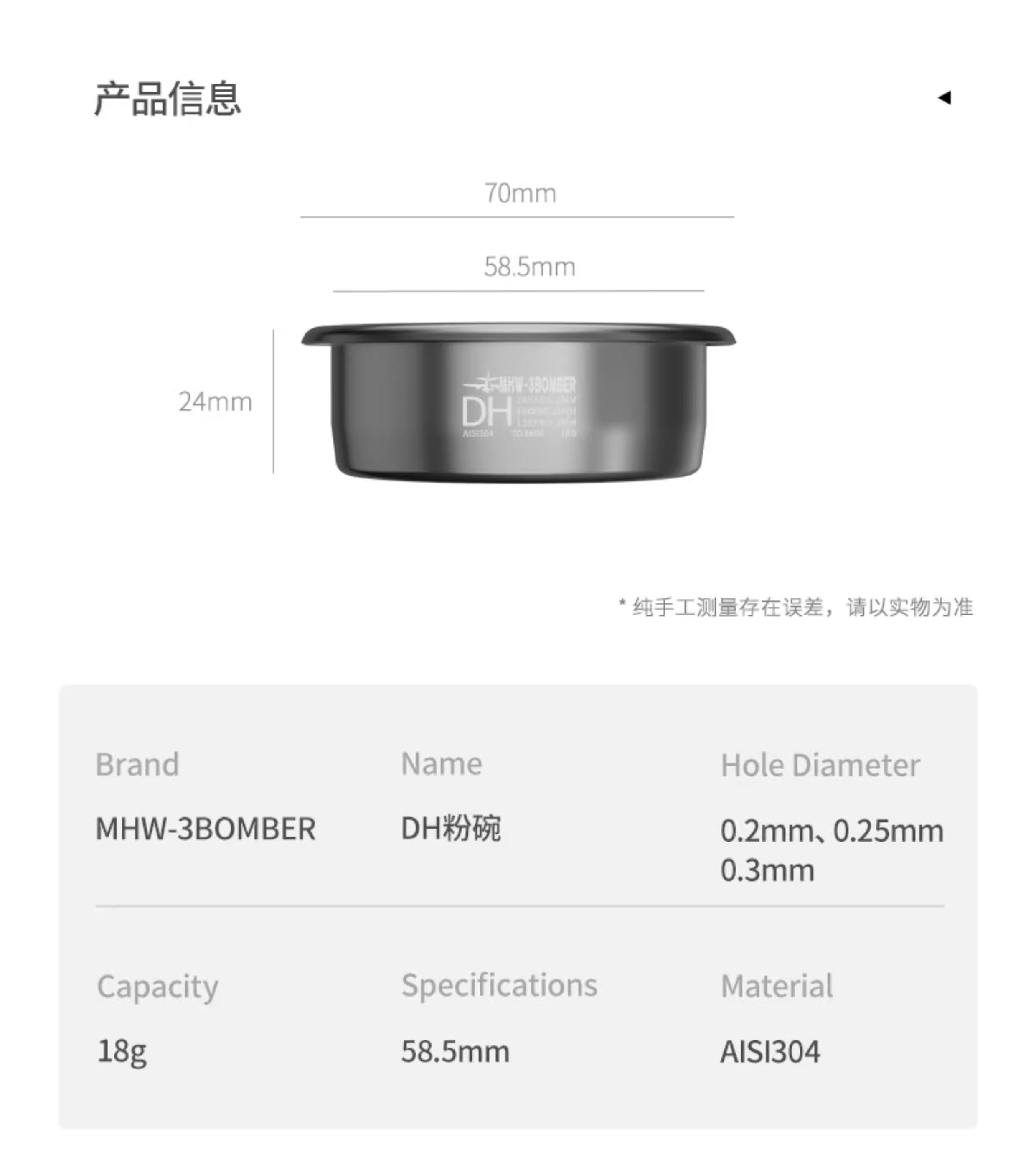 Máy pha cà phê Ý MHW Bomber DH Powder Bowl, bộ lọc cà phê không đáy, phụ kiện chiết xuất bột cà phê, kích thước phổ thông 58mm