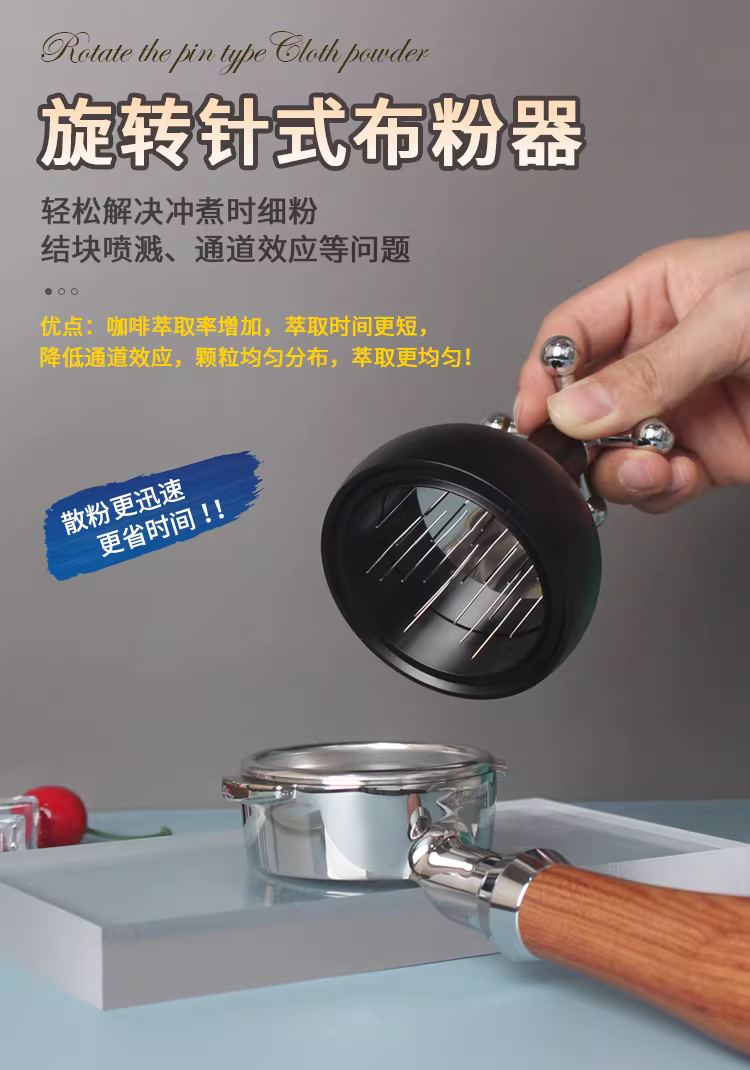 - Máy phân phối bột kim xoay phân tán đều bã cà phê cho tay cầm máy pha cà phê, kim bột 51/53/58mm