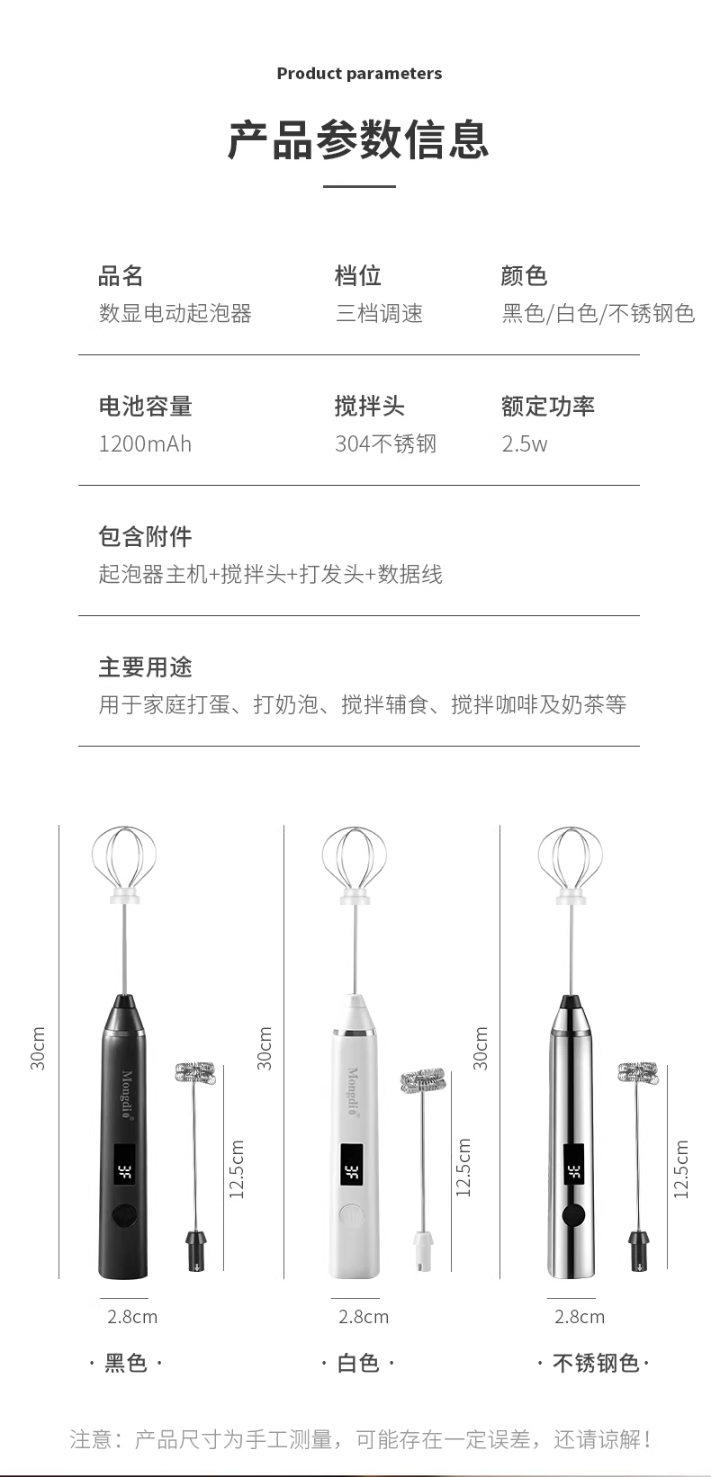 - Máy tạo bọt sữa cà phê Mongdio, máy đánh bọt sữa hiển thị kỹ thuật số, máy khuấy sữa điện
