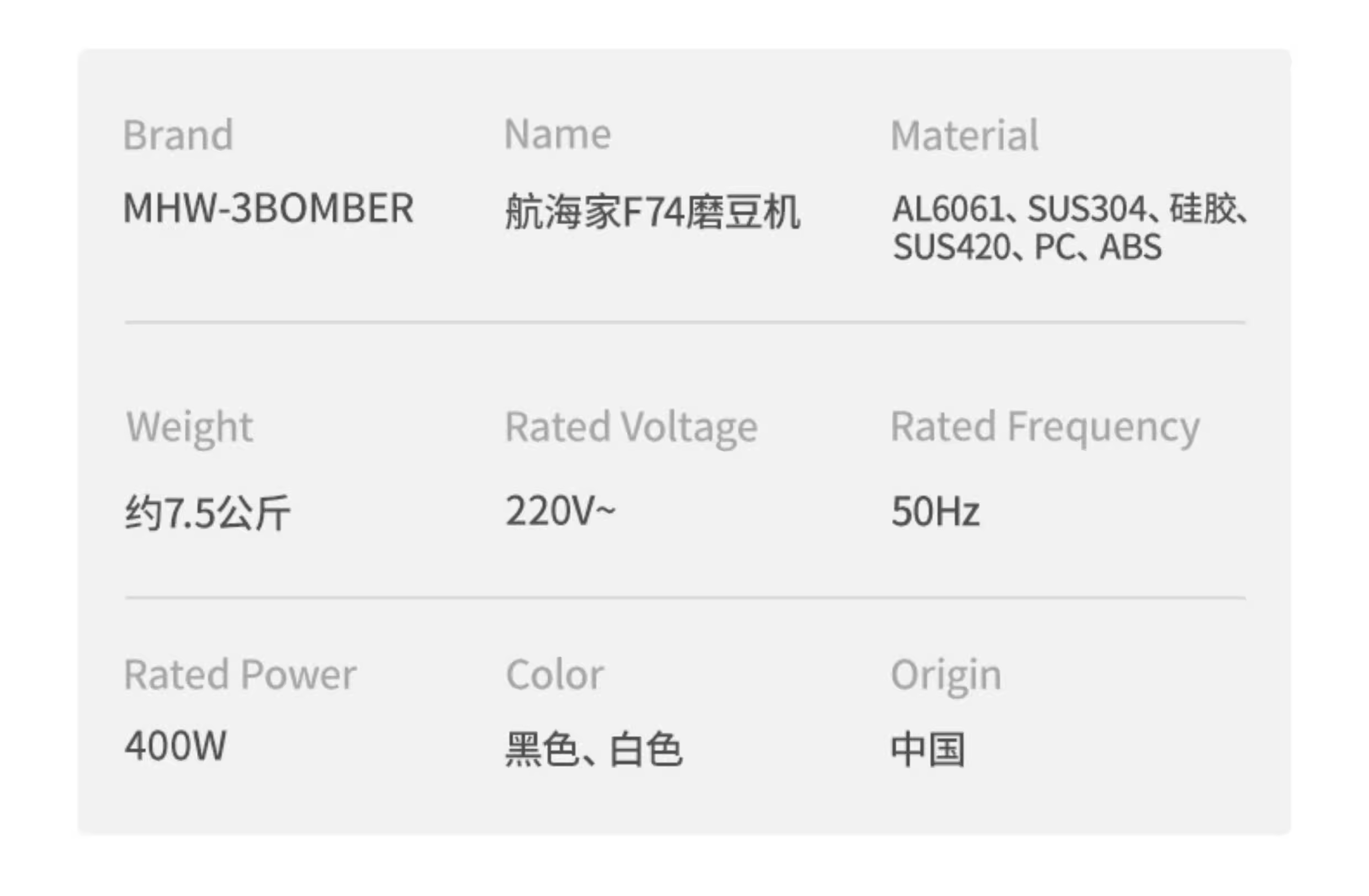 Máy xay cà phê điện MHW-3BOMBER Bomber Voyager F74, máy xay cà phê hạt xay tay kiểu Ý dùng cho gia đình