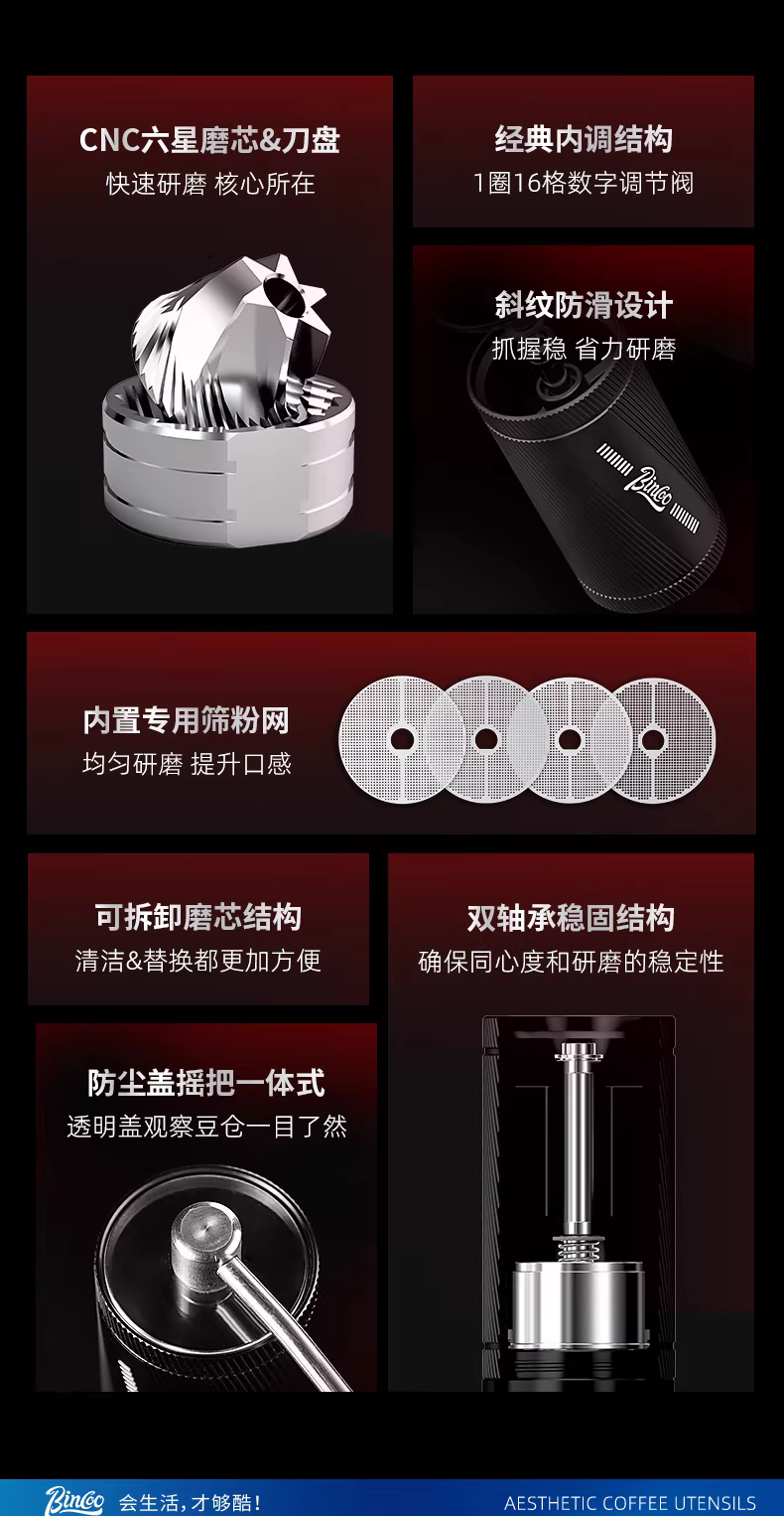 Máy xay cà phê quay tay Bincoo Traveler SM10 có màn hình, máy xay cà phê thủ công dùng trong gia đình