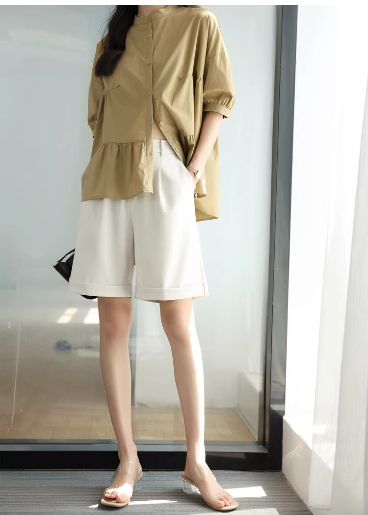 - Mọi người đều có một chiếc! Quần short đi làm cạp cao, dáng chữ A, che hông, tăng chiều cao, chống nhăn, mỏng, dài đến giữa đùi dành cho nữ, mới cho mùa hè.