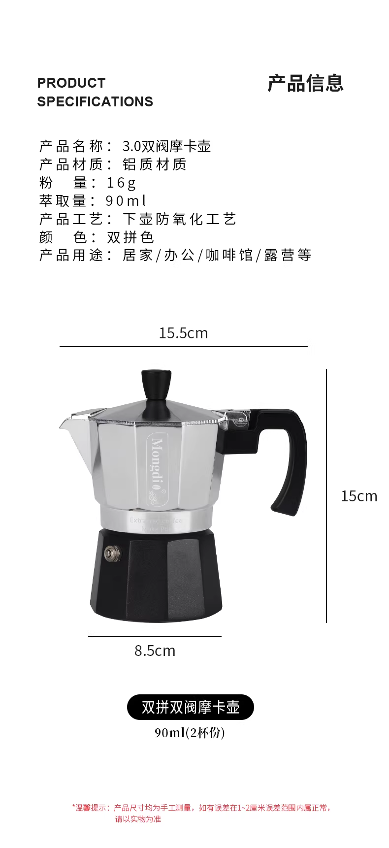 - Mongdio Moka pot bộ van đôi máy pha cà phê hộ gia đình máy pha cà phê espresso nhỏ dụng cụ pha cà phê