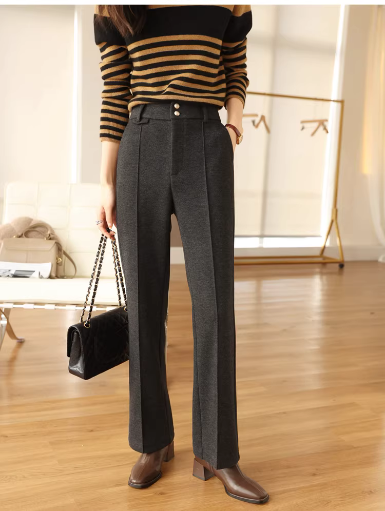 Một bước đi chiến thắng: quần bootcut! Chất liệu len pha, dày dặn, lưng cao vừa phải, giúp thon gọn, kéo dài chân, quần len dáng loe dành cho nữ, mùa thu đông.