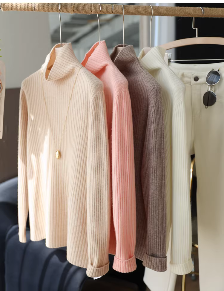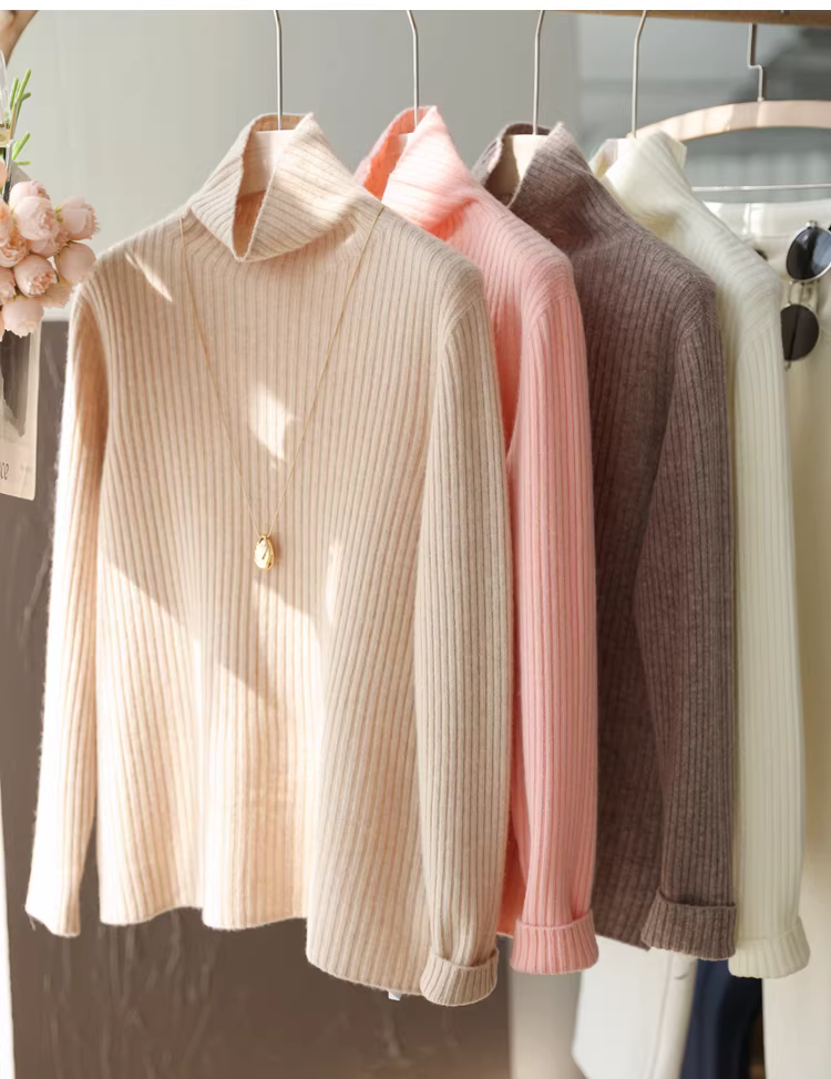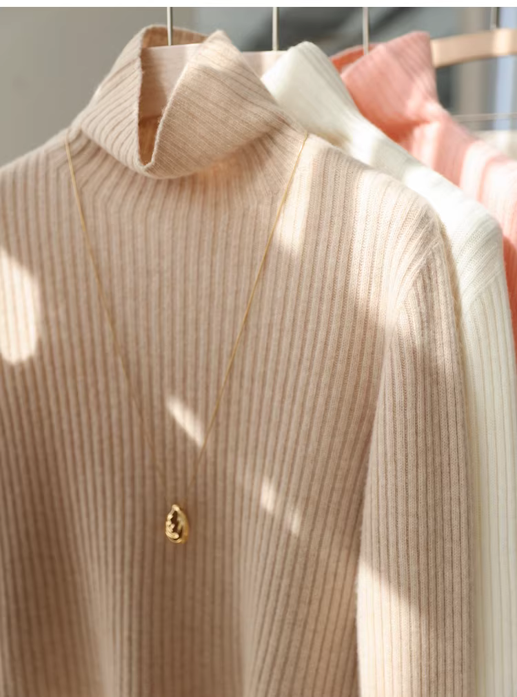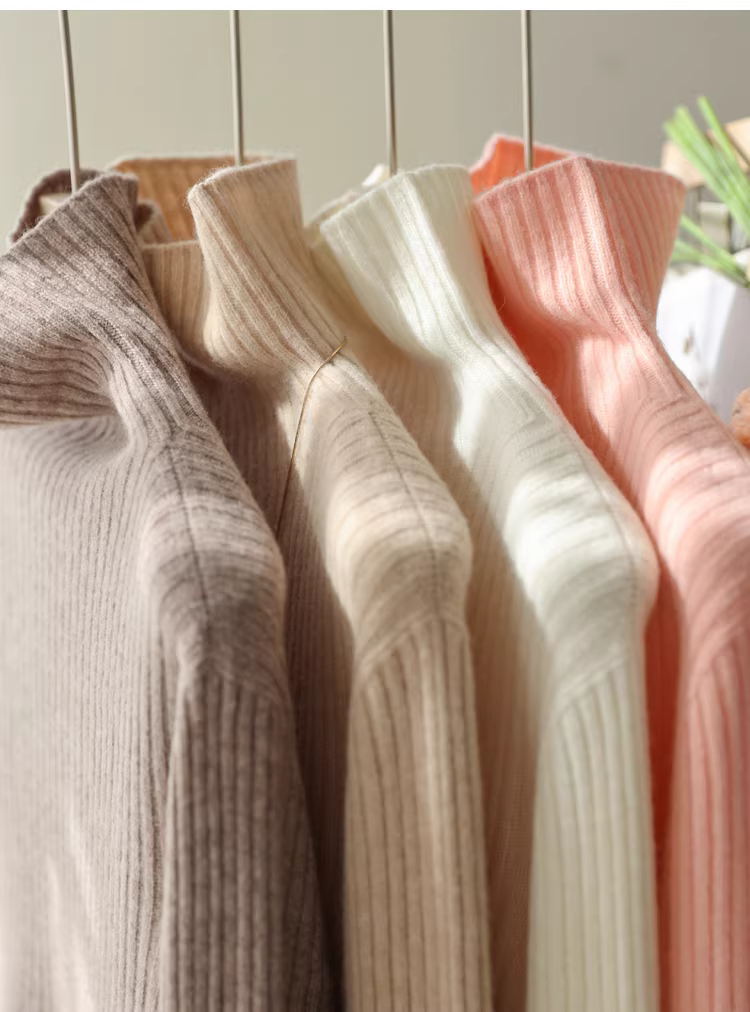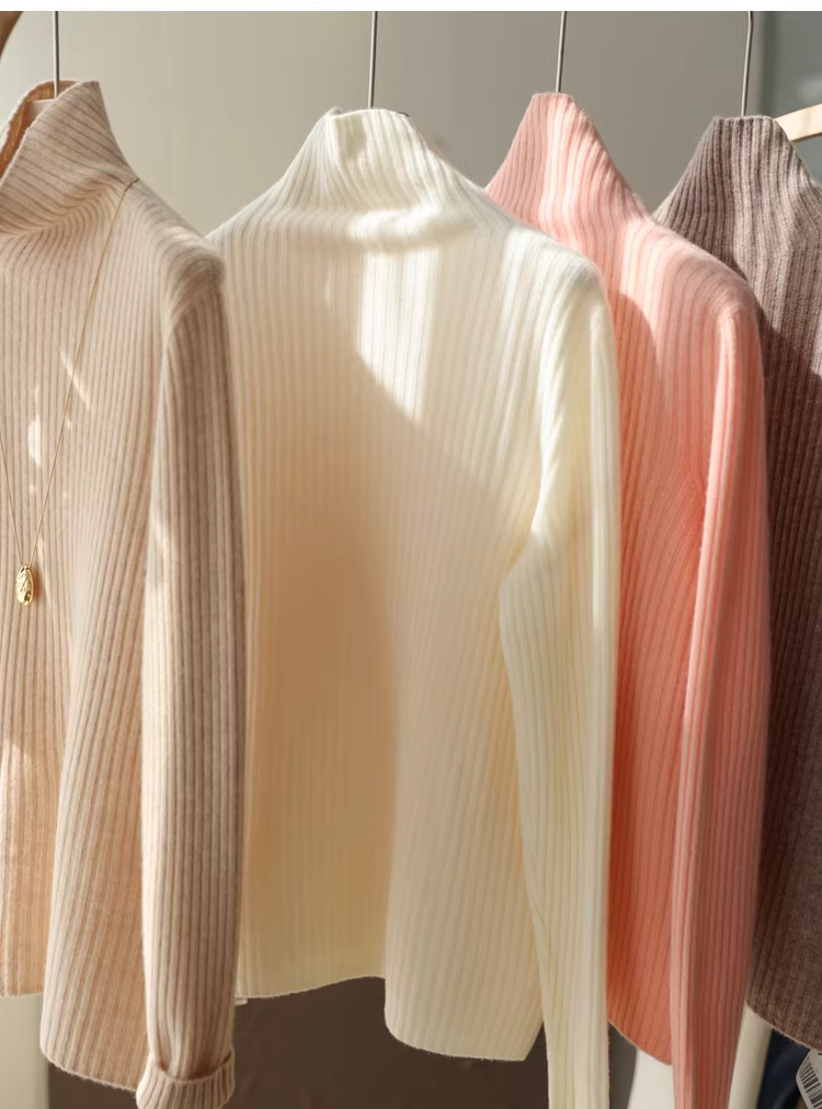 Một món đồ không thể thiếu cho mùa thu đông! Áo len cao cổ liền mạch, chất liệu len 100%, dày 270g, kiểu dáng ôm dáng, màu trơn, đa năng, dành cho nữ.