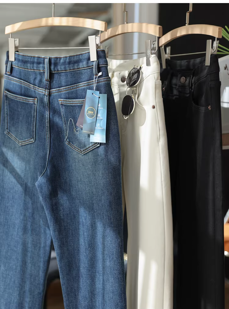 Một món đồ phù hợp với mọi phong cách! Quần jean nữ dáng ống đứng, cạp cao, chất liệu dày dặn, lót lông cừu, co giãn bốn chiều, siêu tôn dáng, kiểu dáng mới cho mùa đông.