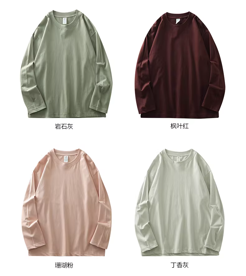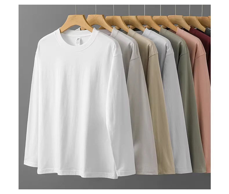 - (Mua một tặng một) Áo thun cotton nguyên chất hạng nặng 260G dành cho nam, áo len dài tay mùa xuân thu, áo sơ mi cổ tròn màu trắng tinh khiết