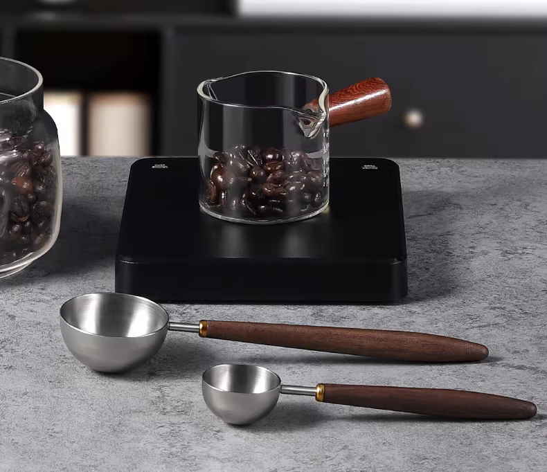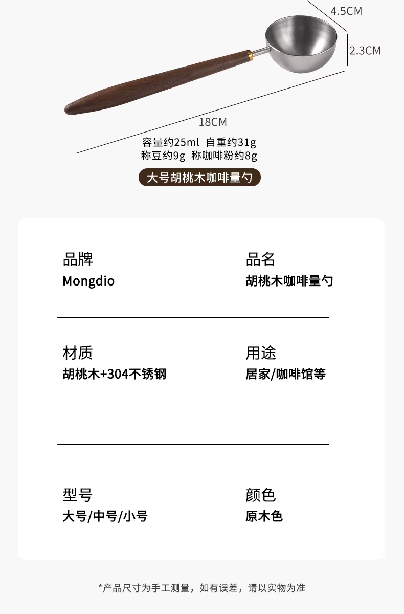 Muỗng cà phê Mongdio muỗng đong cà phê bằng thép không gỉ muỗng bột cà phê muỗng hạt cà phê tay cầm bằng gỗ quả óc chó gram muỗng muỗng đong