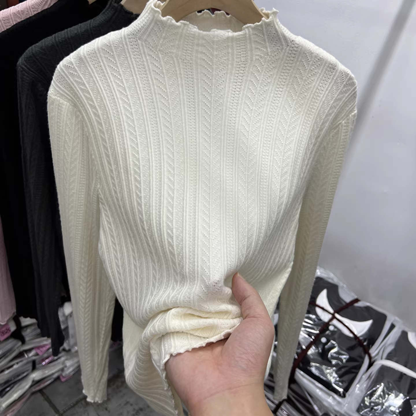 Nanyou Fashion Quần áo nữ phong cách châu Âu có nhãn cắt, viền xếp nếp, áo sơ mi dệt kim cổ cao nửa cổ cho mùa thu đông, áo bên trong tôn dáng, áo thời trang.