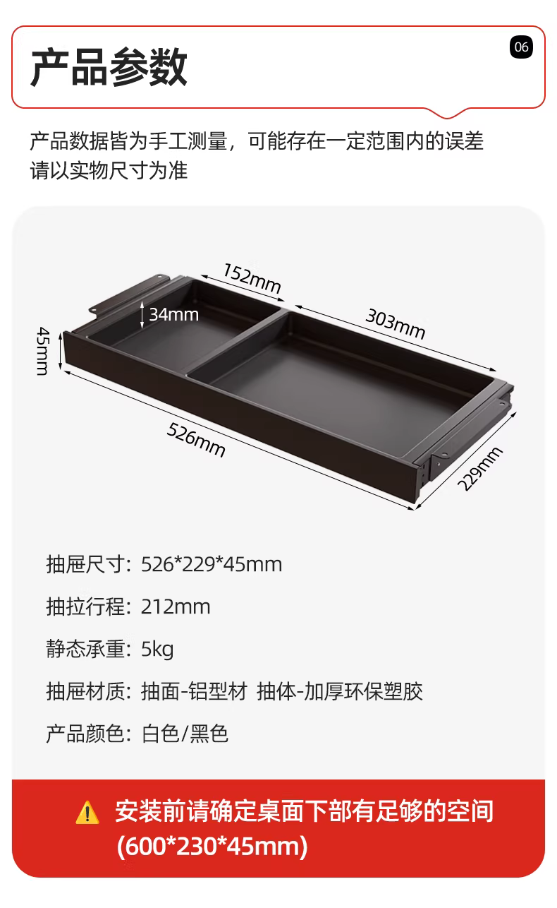 * Chất liệu sản phẩm: mặt ngăn kéo hợp kim nhôm, khung vỏ đỡ nhựa ABS thân thiện môi trường